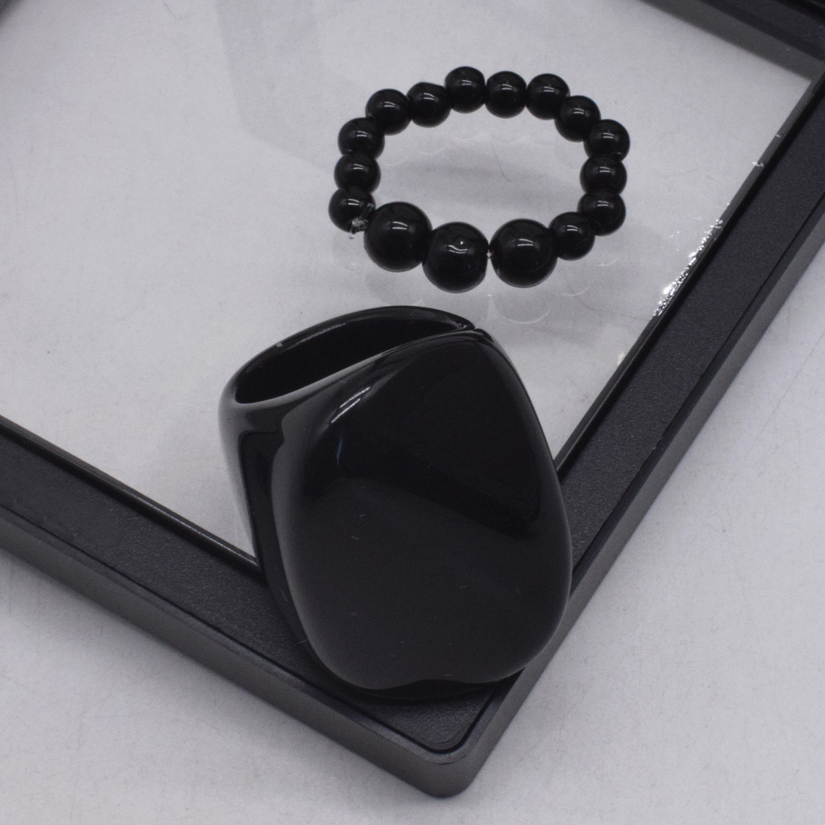 冷淡风黑色亚克力珠珠戒指方型树脂食指戒时尚简约潮流几何指环女