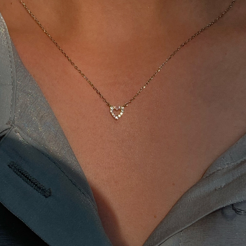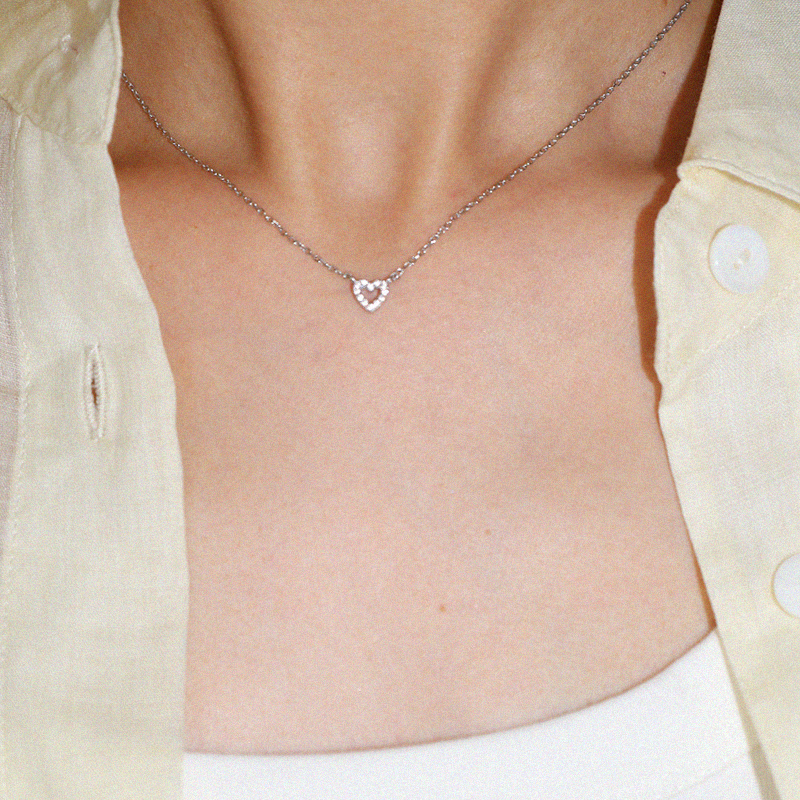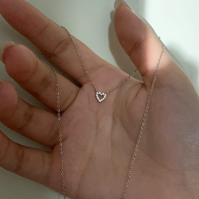 LLab 通体s925迷你爱心满钻锁骨链闪闪发光小鼻嘎钻极细项链