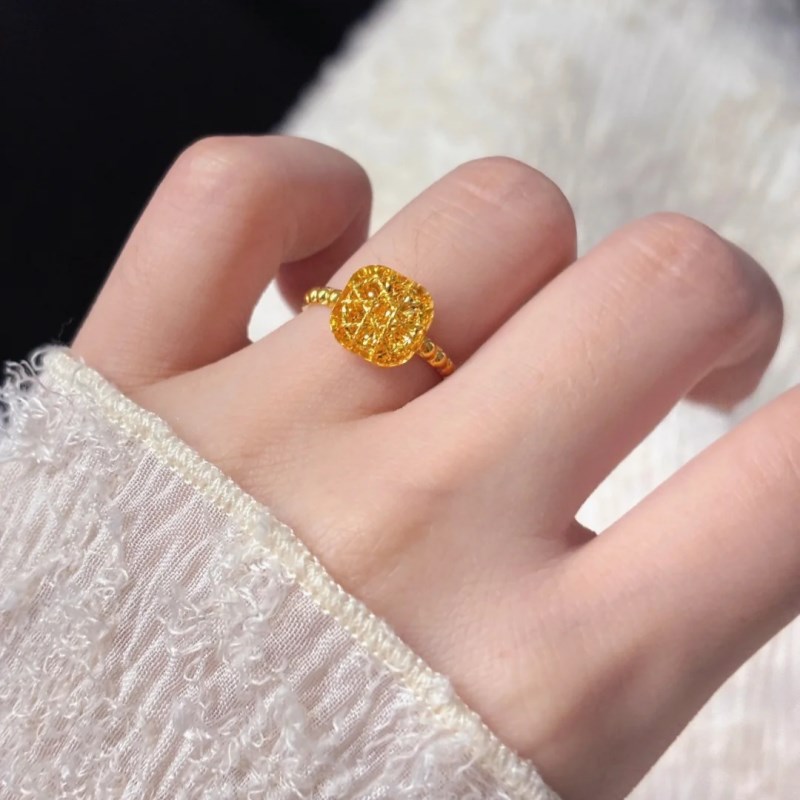 金包银拉丝e小方糖戒指女爆闪花丝素圈镂空指环对戒送女友节日礼