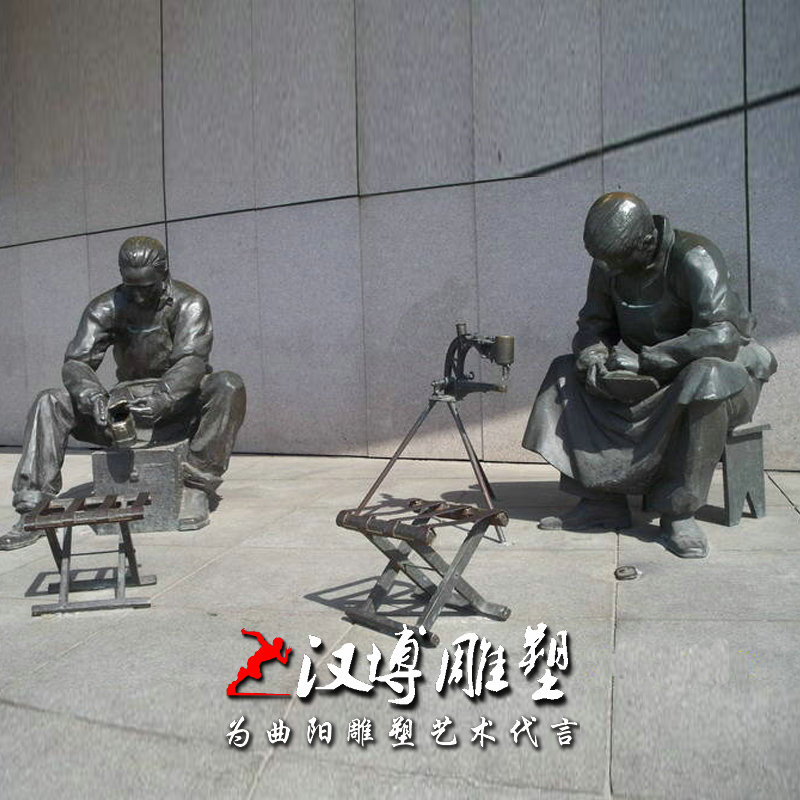 铸铜玻璃钢仿铜人物修鞋匠雕塑 商业步行街民俗修鞋场景小品铜雕