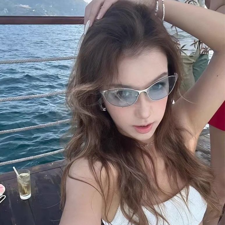 复古蓝色猫眼墨镜女2025新款金属朋克Y2K高级感防紫外线太阳眼镜
