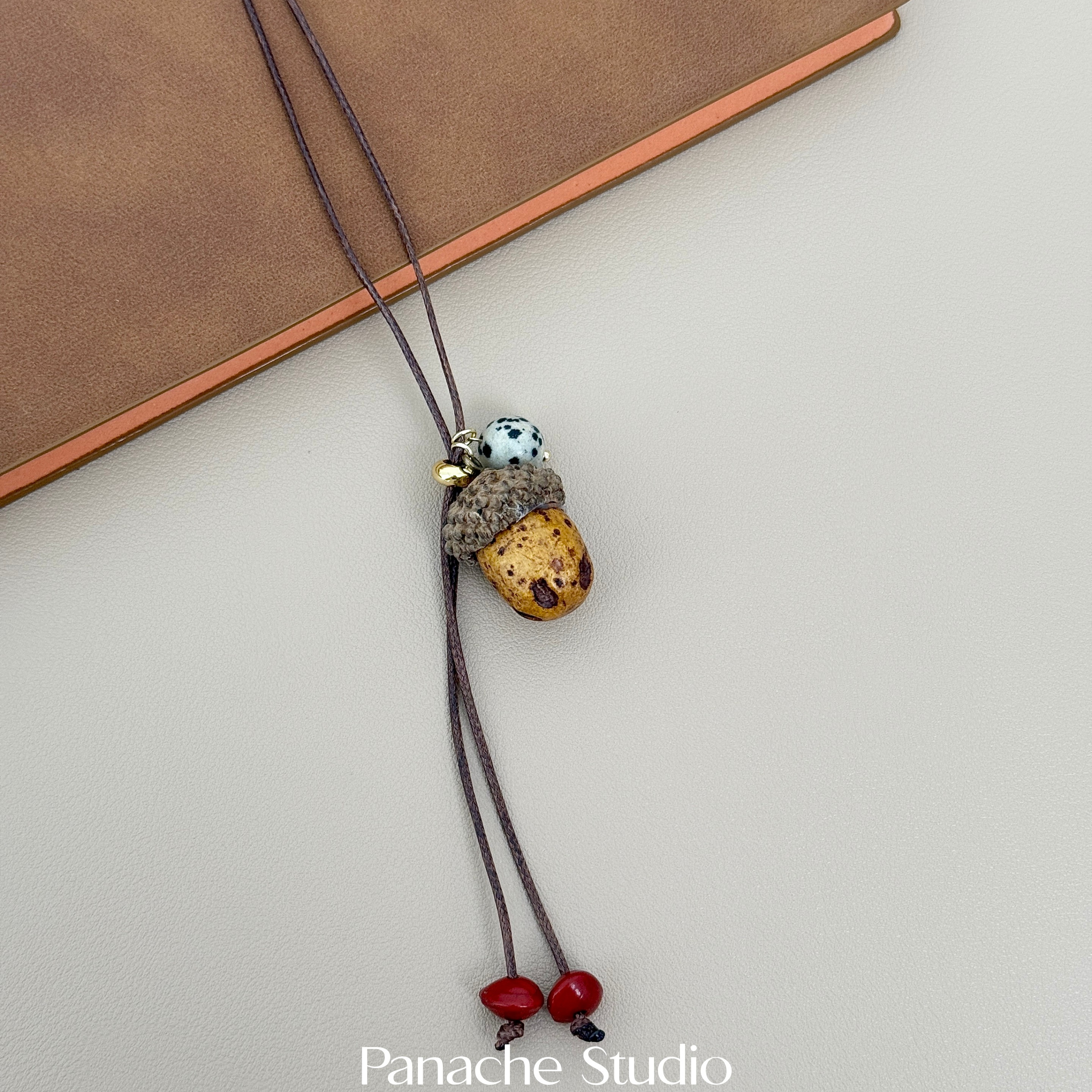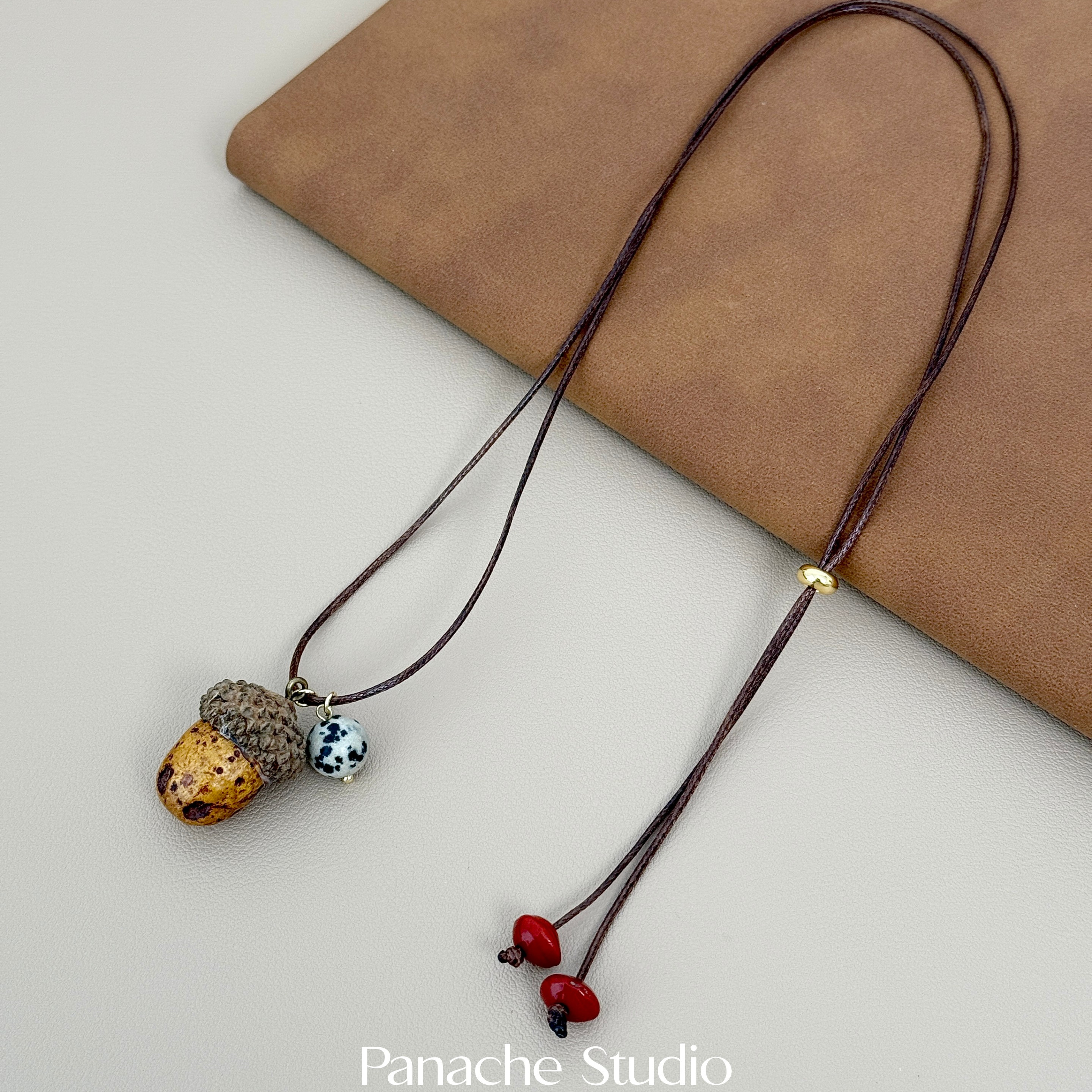 PANACHE 天然橡果吊坠皮绳长款项链 复古小众植物果实简约毛衣链