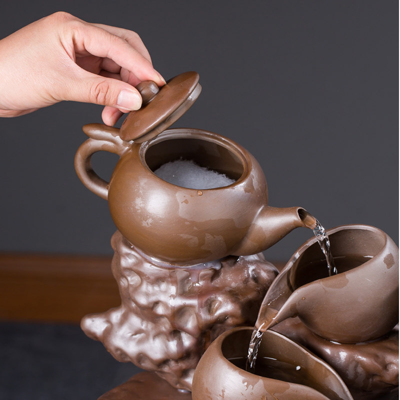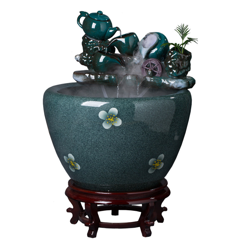 陶瓷鱼缸循环水过滤器流水摆件石槽水景流水器客厅喷泉加湿增氧