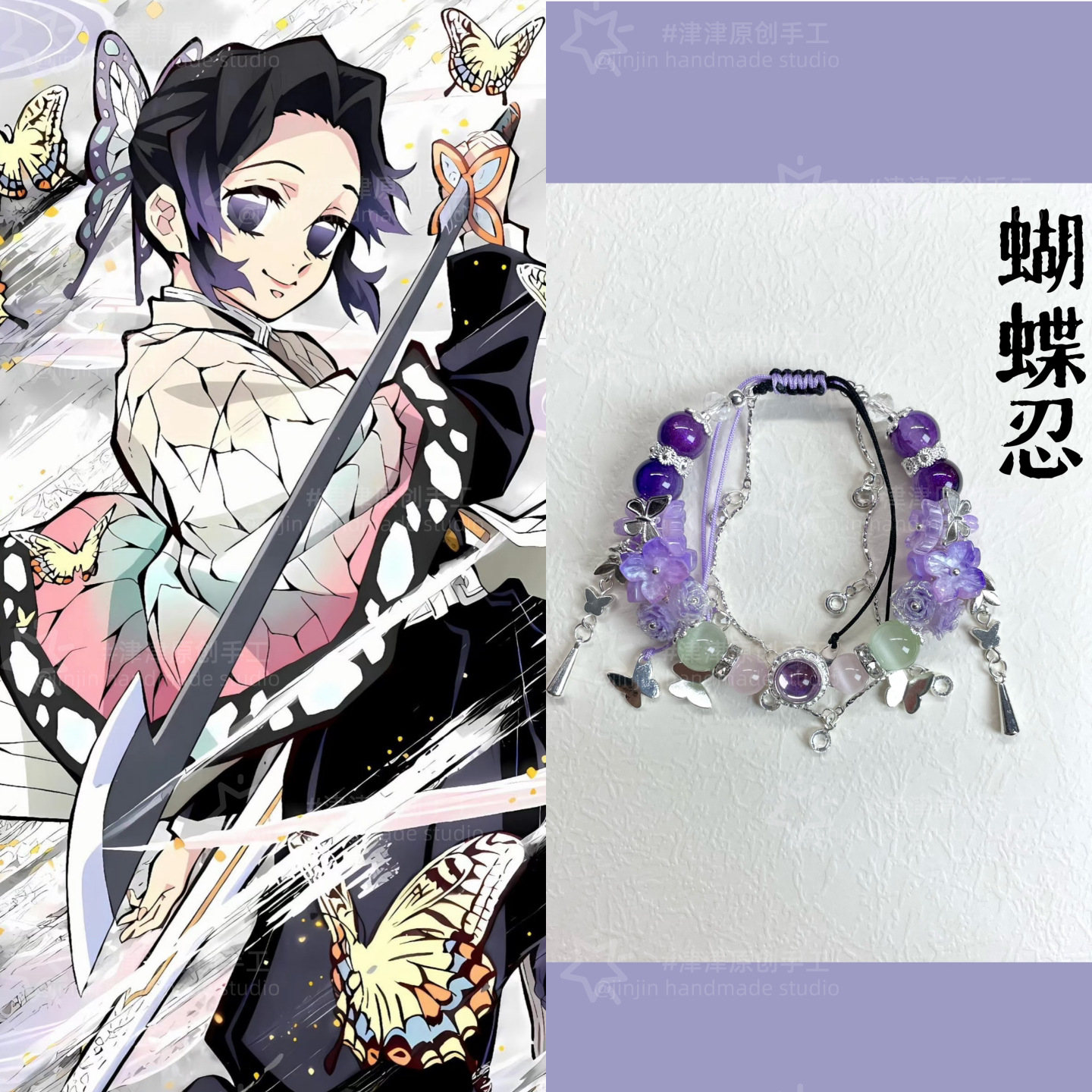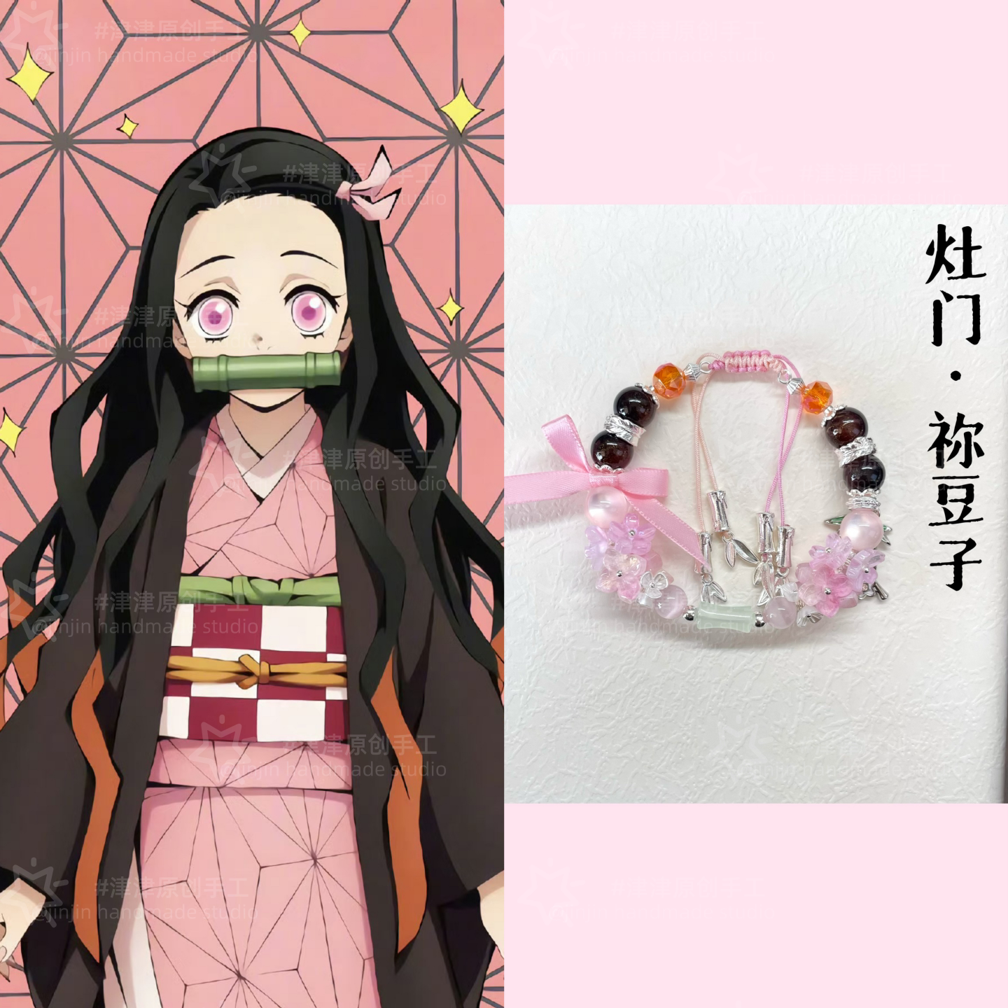 鬼灭之刃祢豆子甘露寺蜜璃蝴蝶忍时透印象手链记忆钢圈抽绳款手串