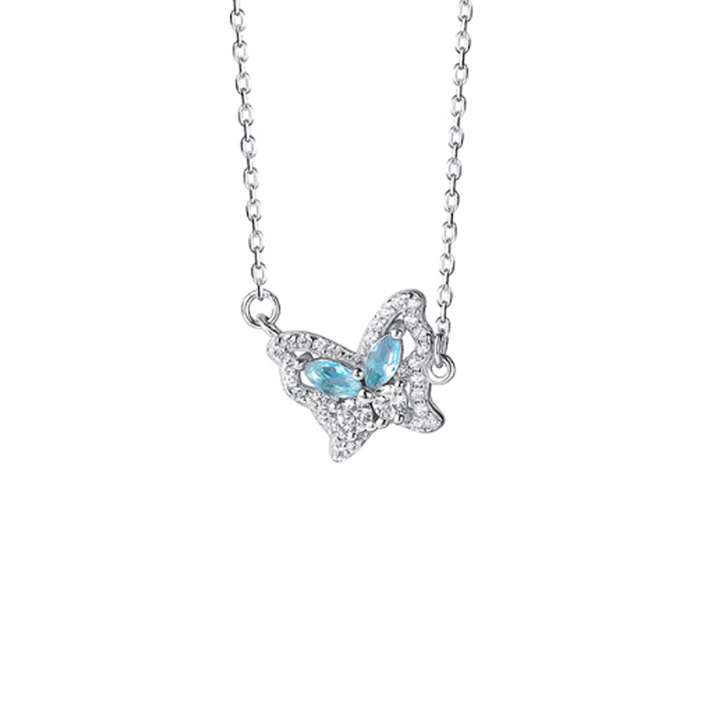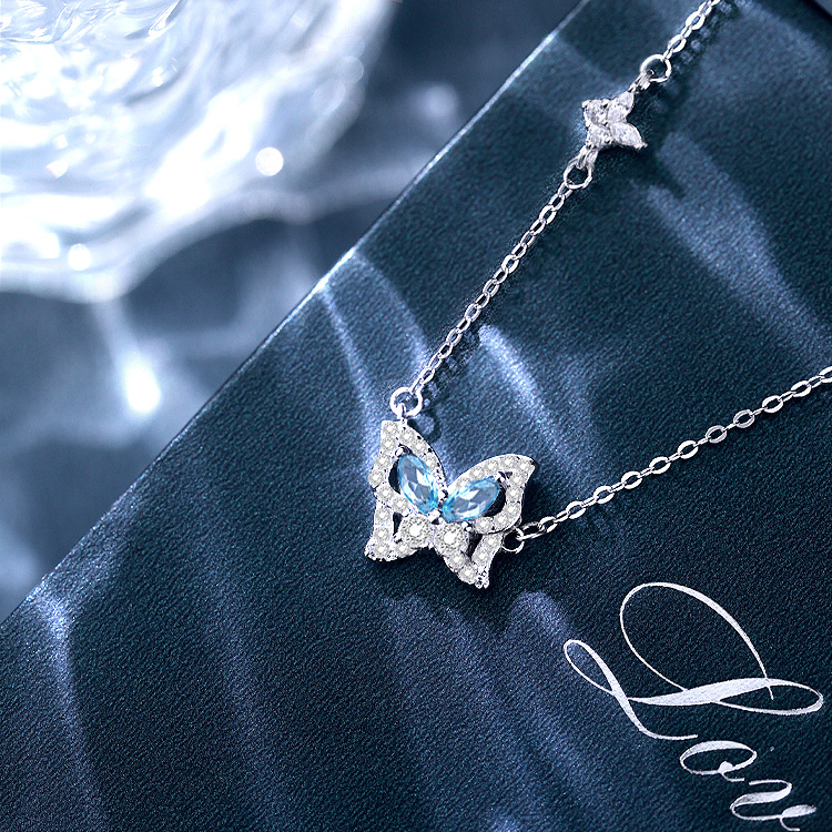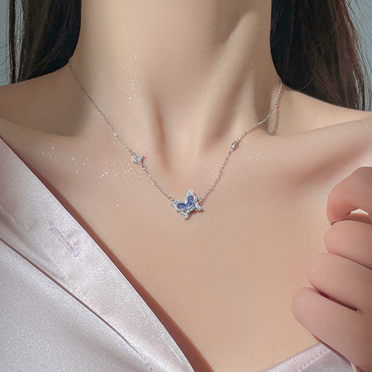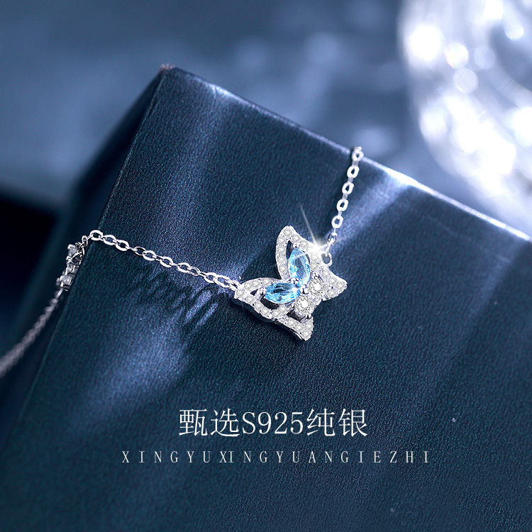 蓝色水晶蝴蝶纯银项链女2025年新款爆款高级感轻奢小众吊坠送女友