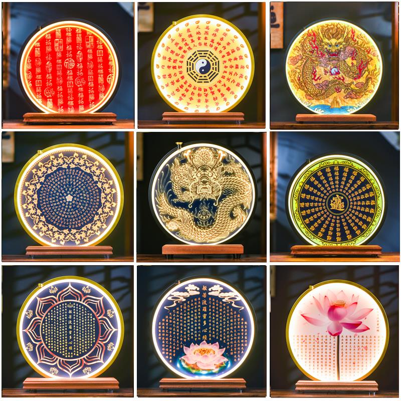 中式家用客厅佛堂佛龛供桌神台观音佛像菩萨背光灯圆形背景灯摆件
