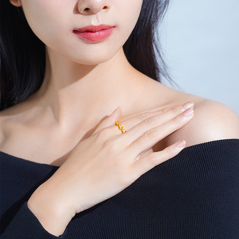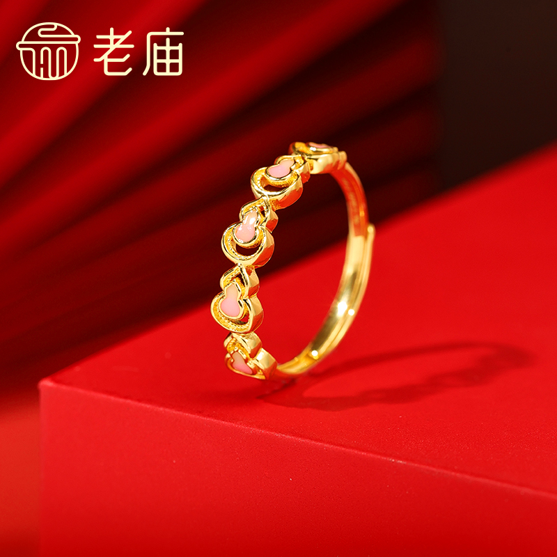 老庙黄金足金999鎏彩葫芦戒指5G福禄添彩中式美学精致可调节官方