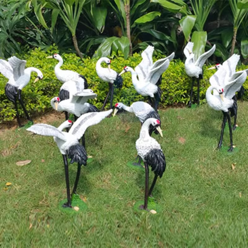 环保树脂工艺品仿真小仙鹤摆件水池花园动物鸟类雕塑庭院饰装造景
