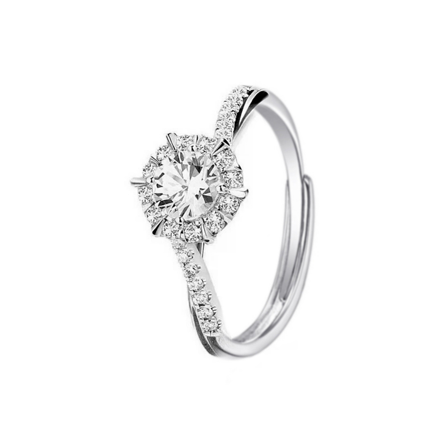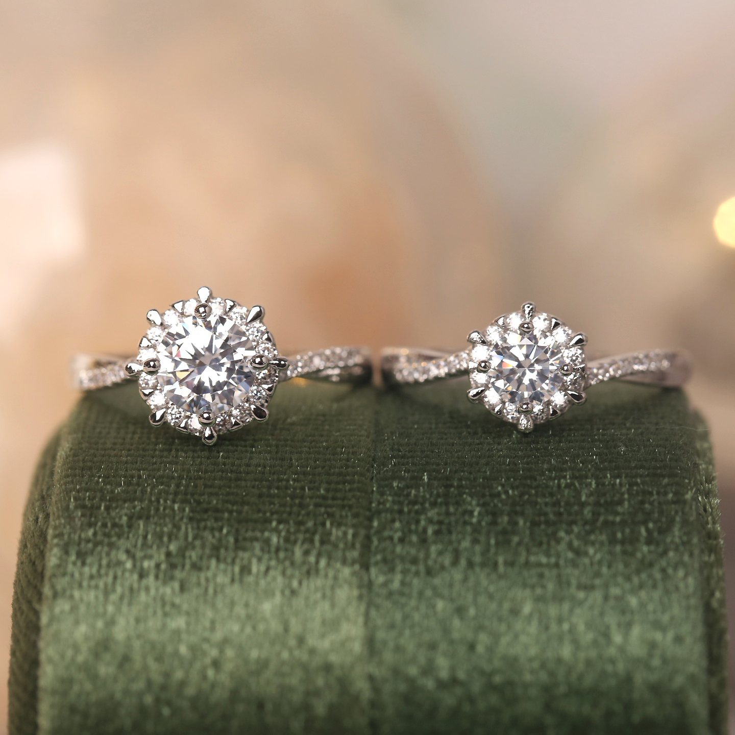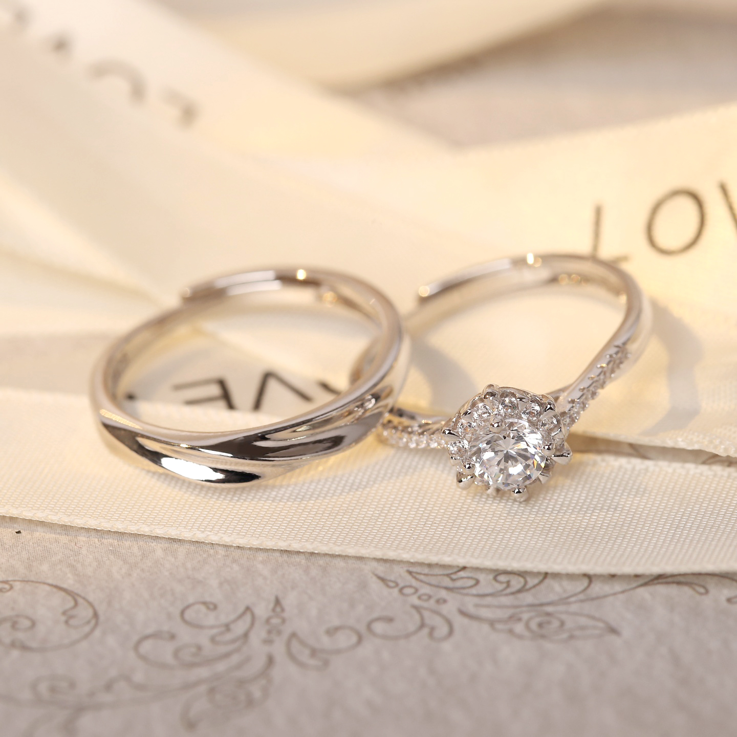 星织款扭臂微镶仿真莫桑石钻戒男女对戒奢华结婚戒指婚礼仪式道具
