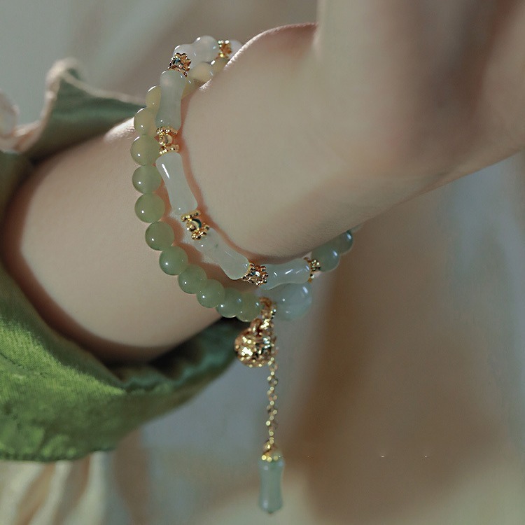 新中式天然和田玉手串竹节串珠手链复古设计东陵玉南瓜手串纯手工