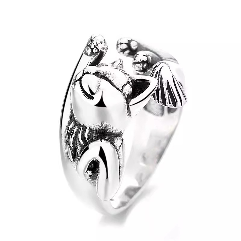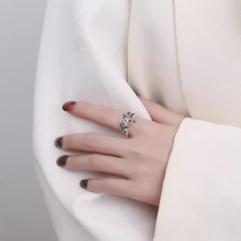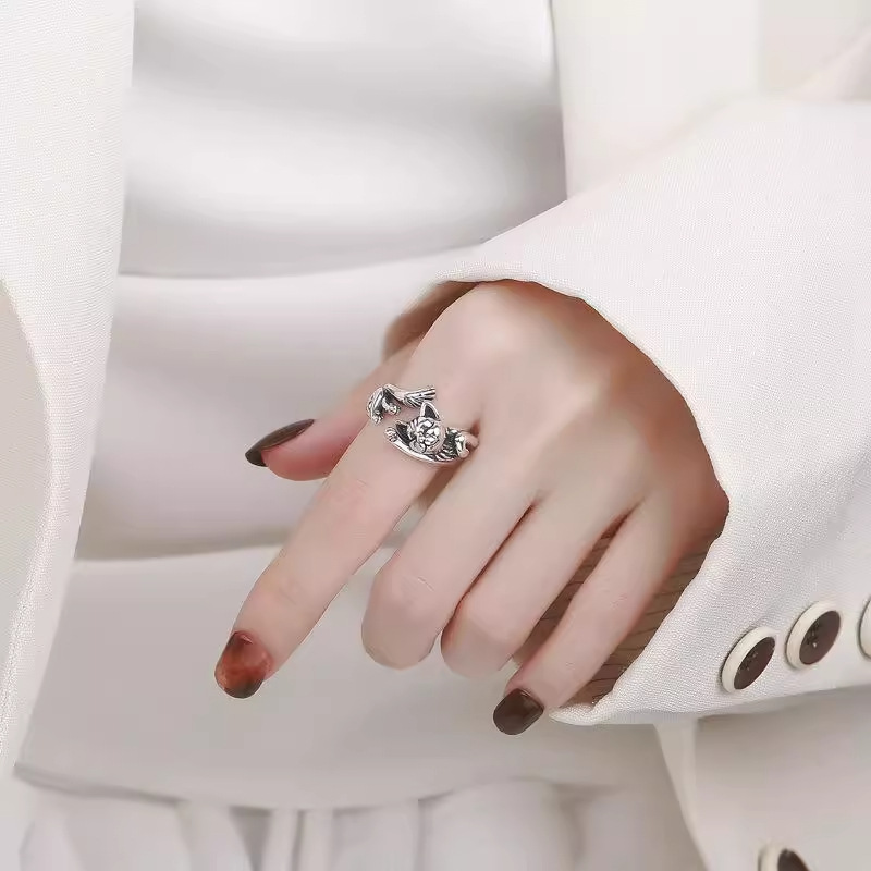 新品流行复古个性飞天小猫咪朋克嘻哈开口戒指