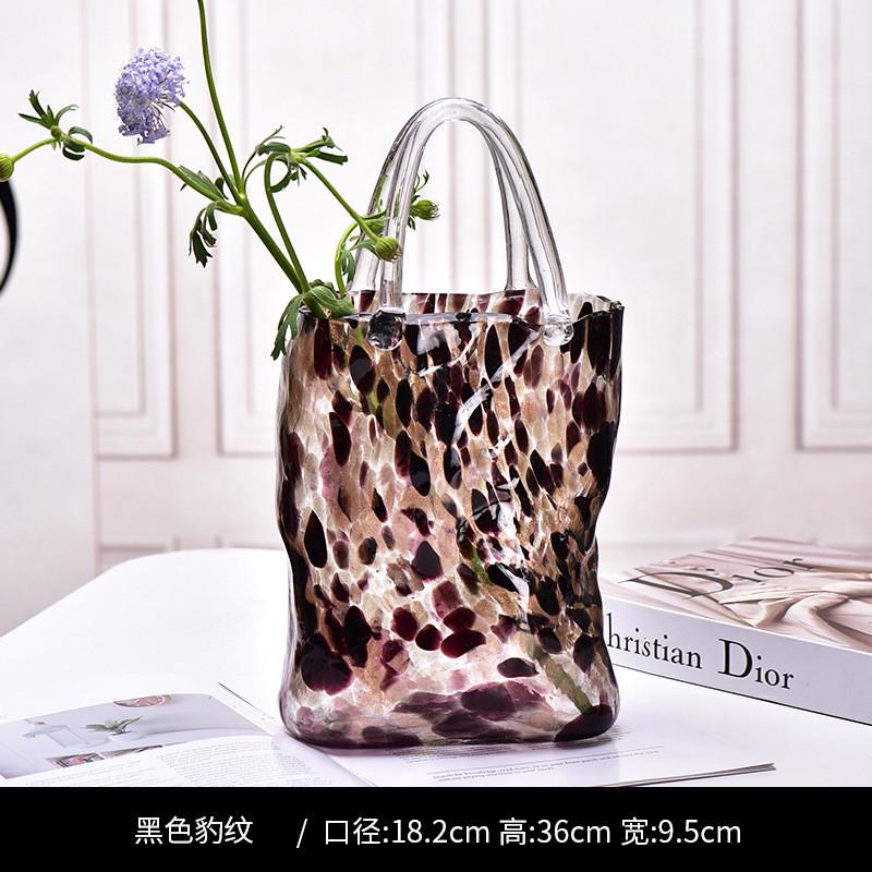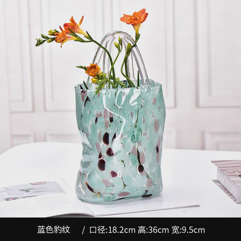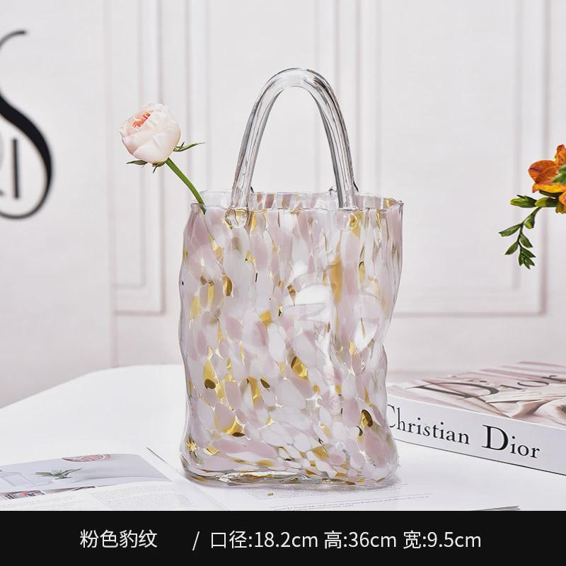 透明落地摆件客厅花点玻璃花瓶带提手奢水培竖条花瓶北欧插花花瓶