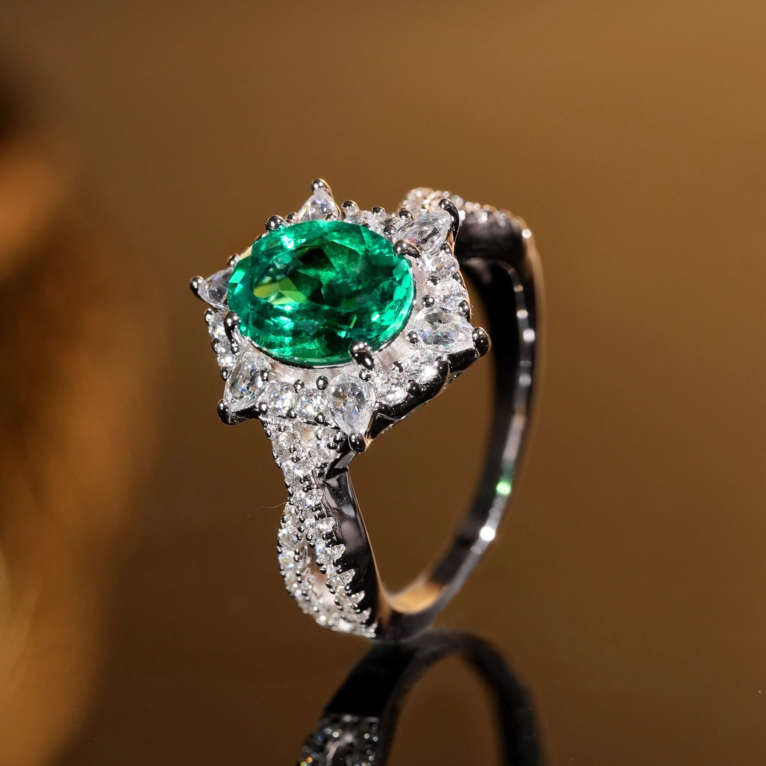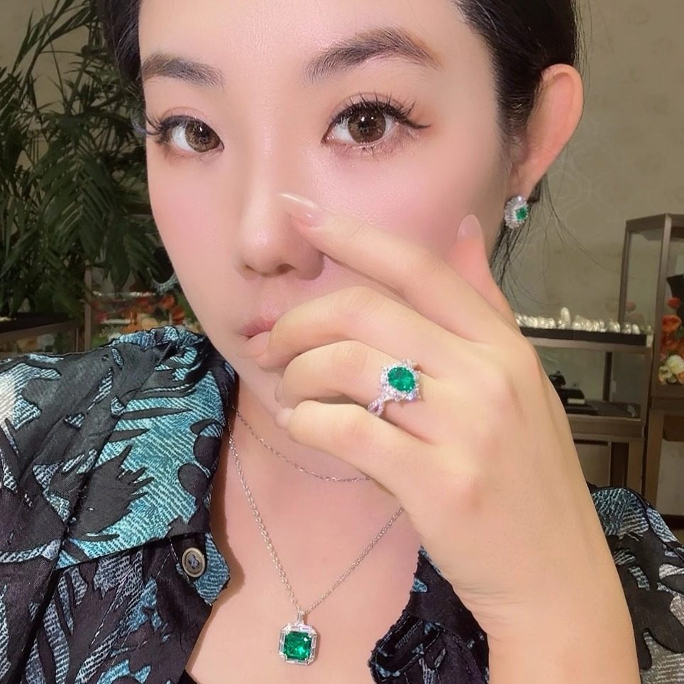 实验室培育祖母绿宝石1.7克拉木佐色鸽子蛋戒指S925银镀金