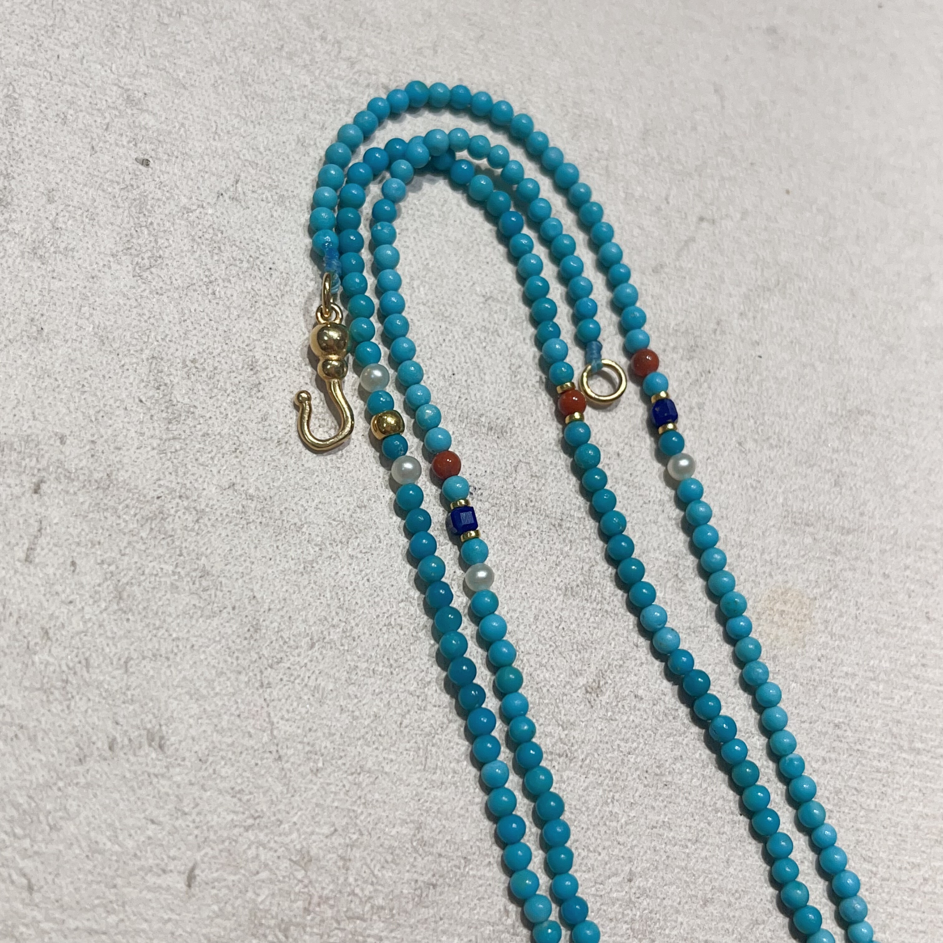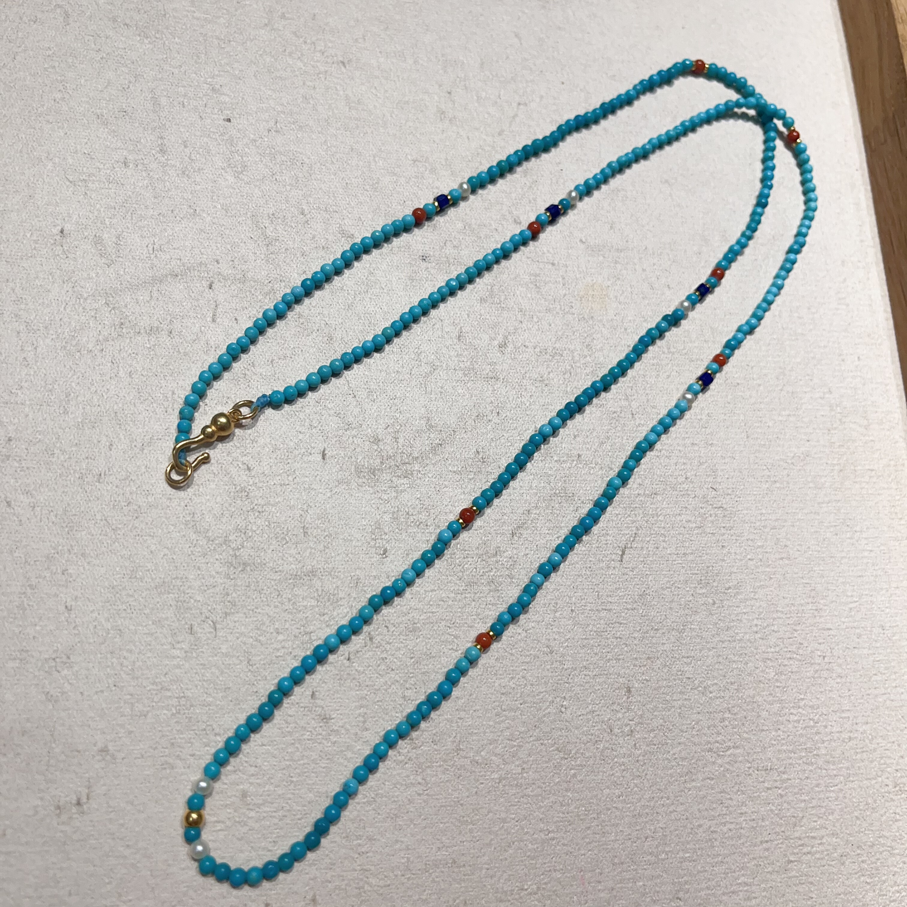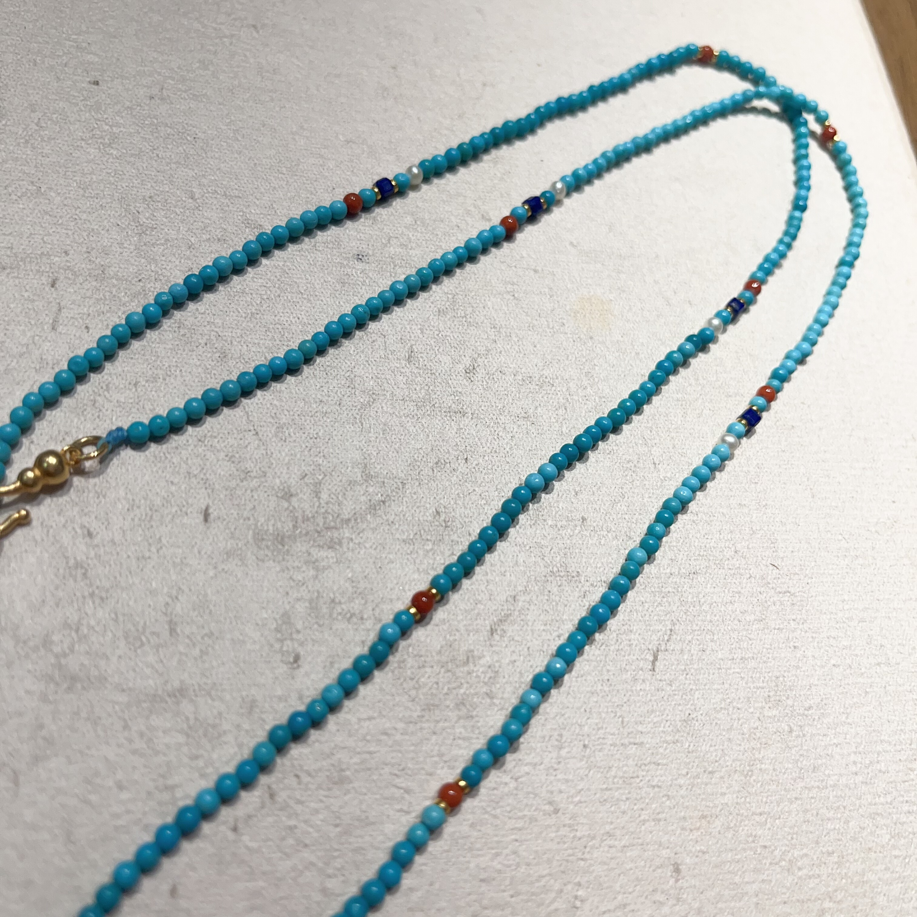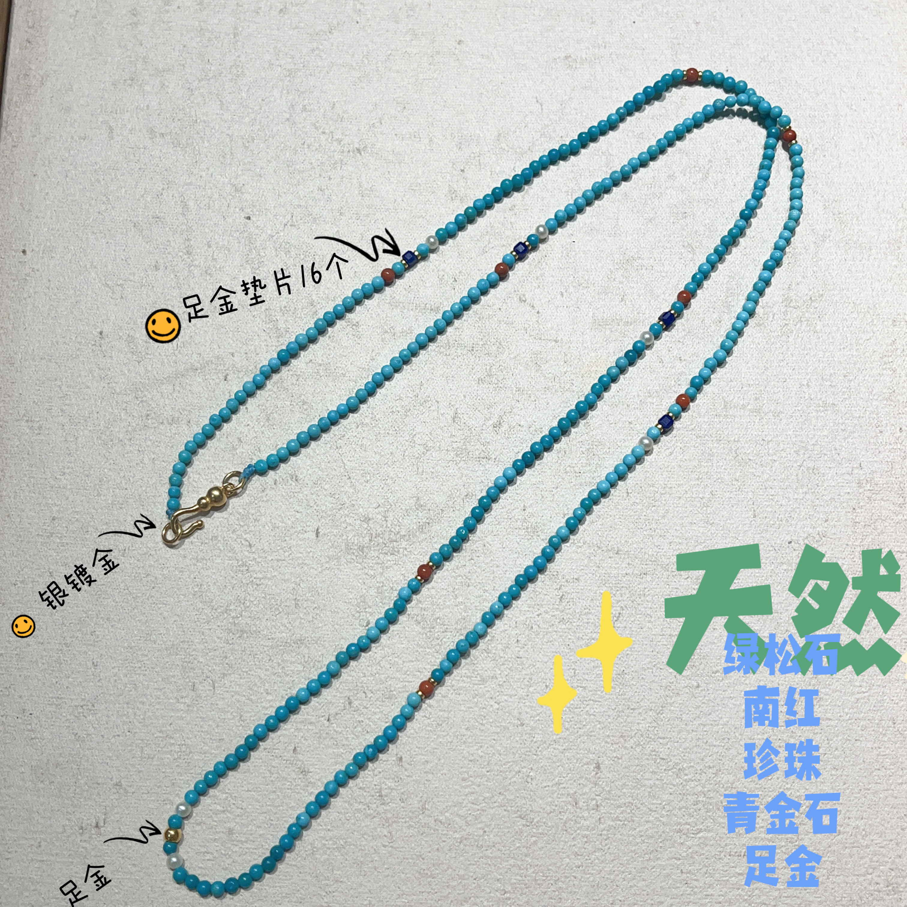 天然绿松石小米珠足金2mm蓝色长款项链女秋冬气质简约款小众复古