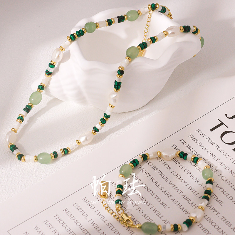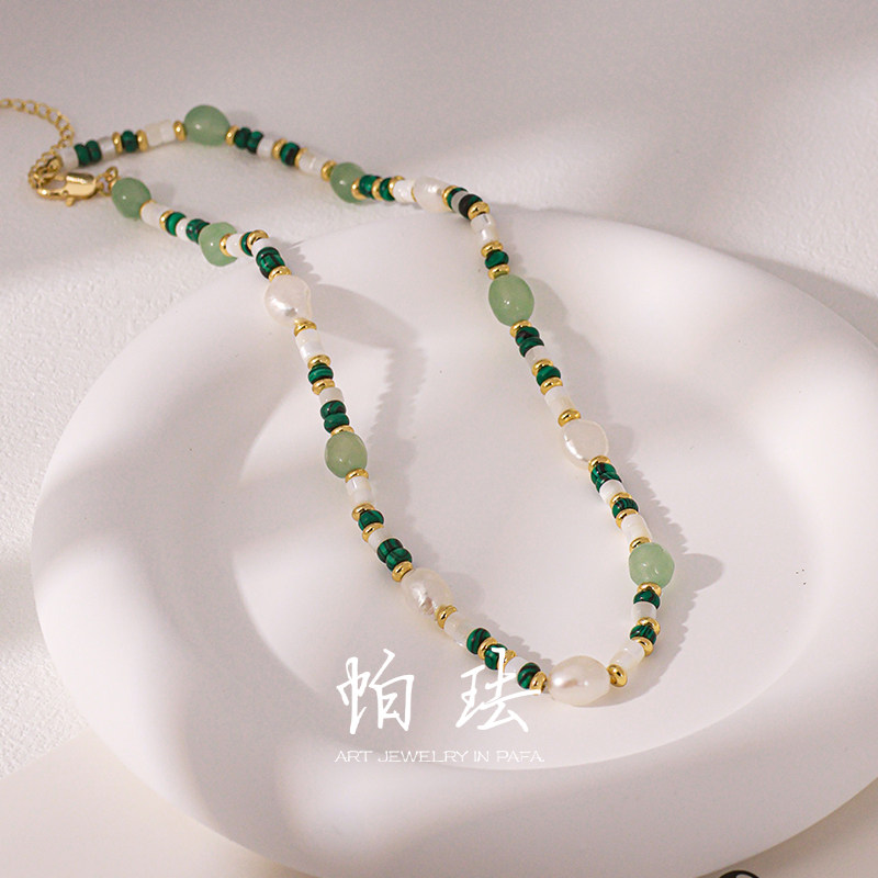 【天然】PAFA帕珐天然孔雀石珍珠项链