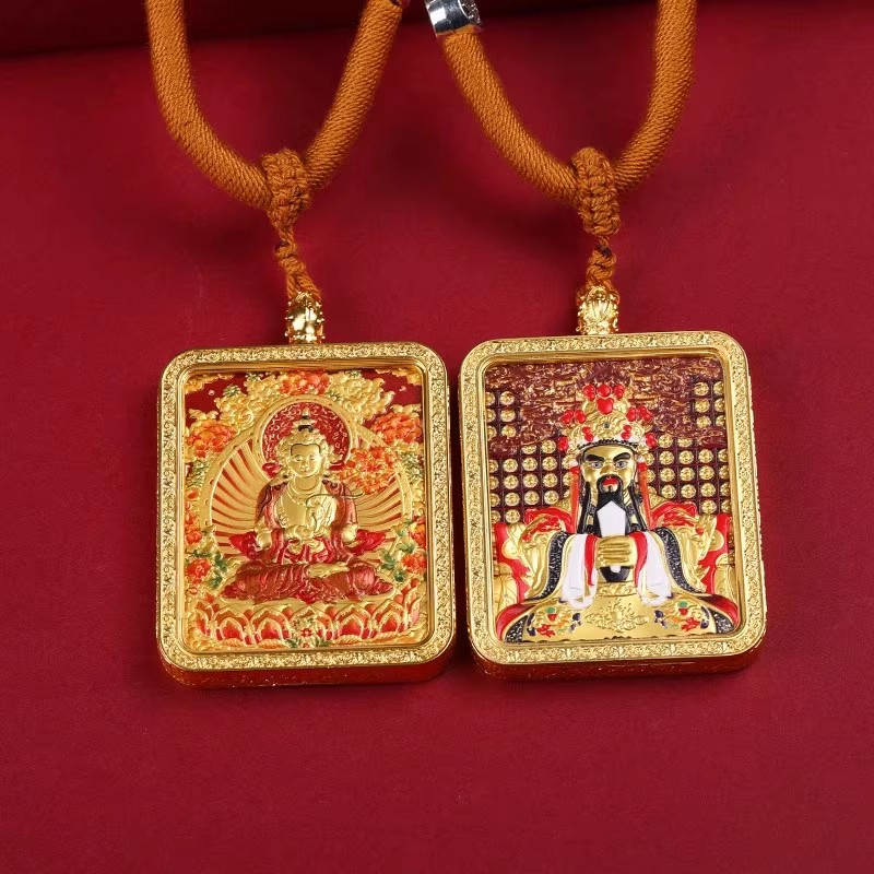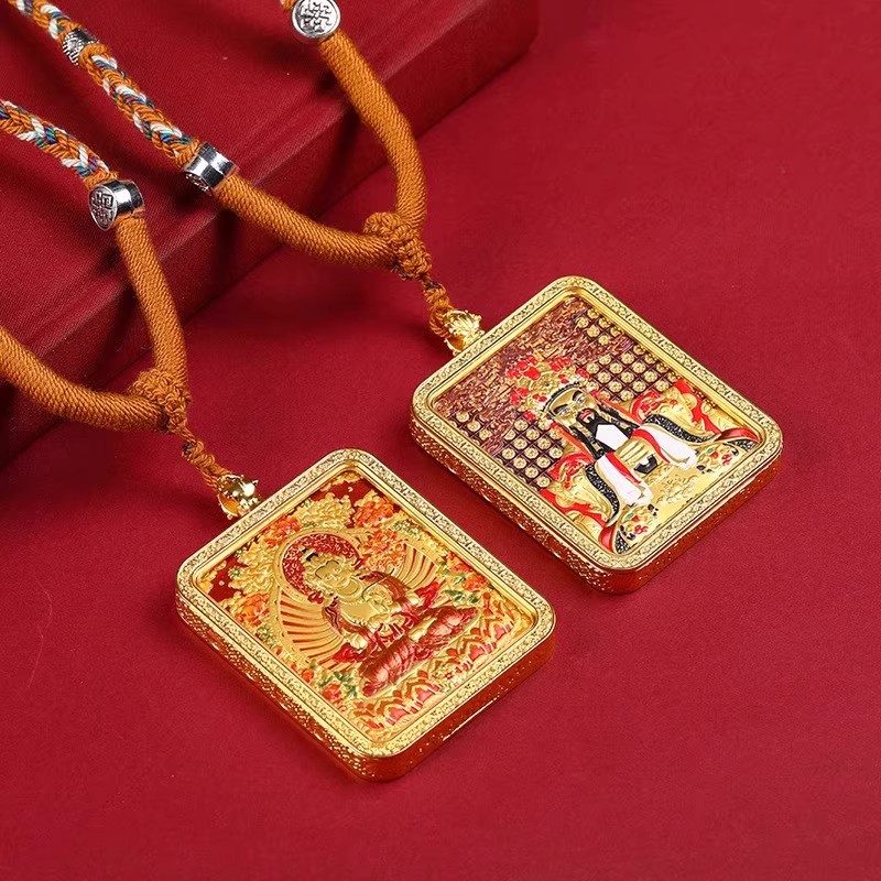 匠心手绘浮雕唐卡五台山龙五爷本命佛八大守护神立体生肖双面黄铜