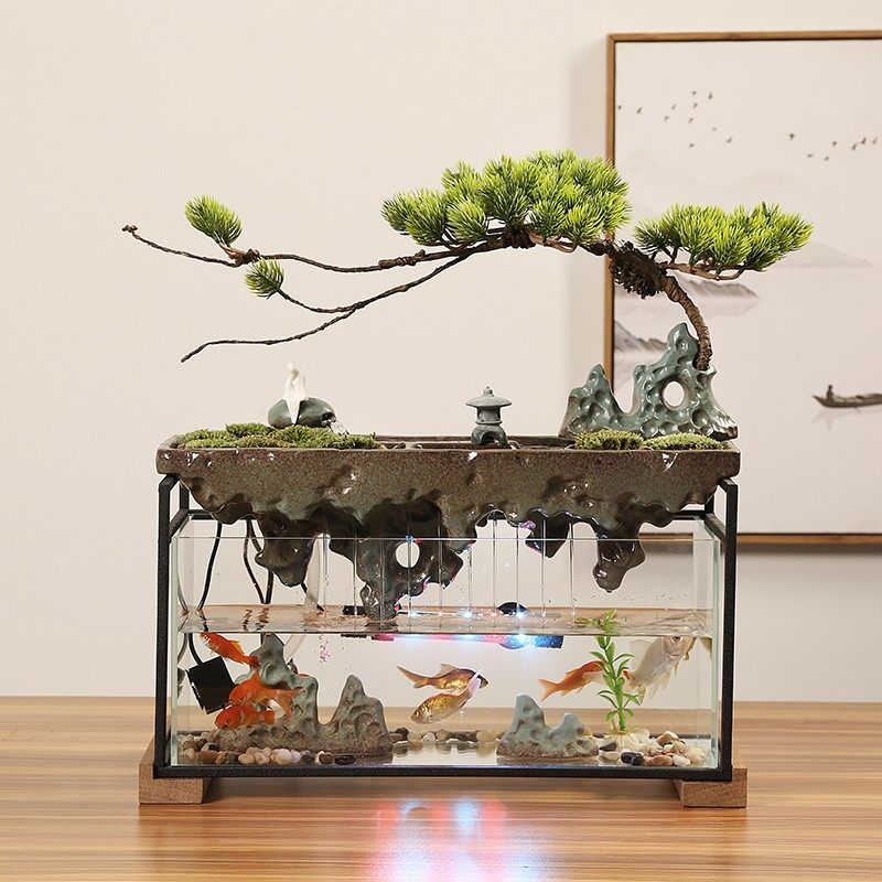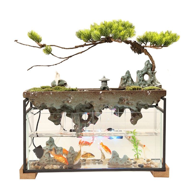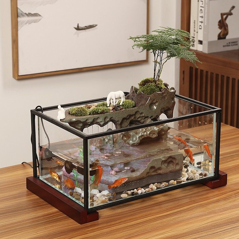 流水生财摆件客厅电视柜桌面玻璃鱼缸循环水转运招财喷泉乔迁礼品