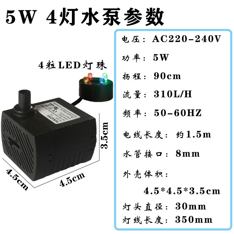 静音220V5W带灯水泵树脂陶瓷流水假山石喷泉鱼缸盆景加湿摆件配件