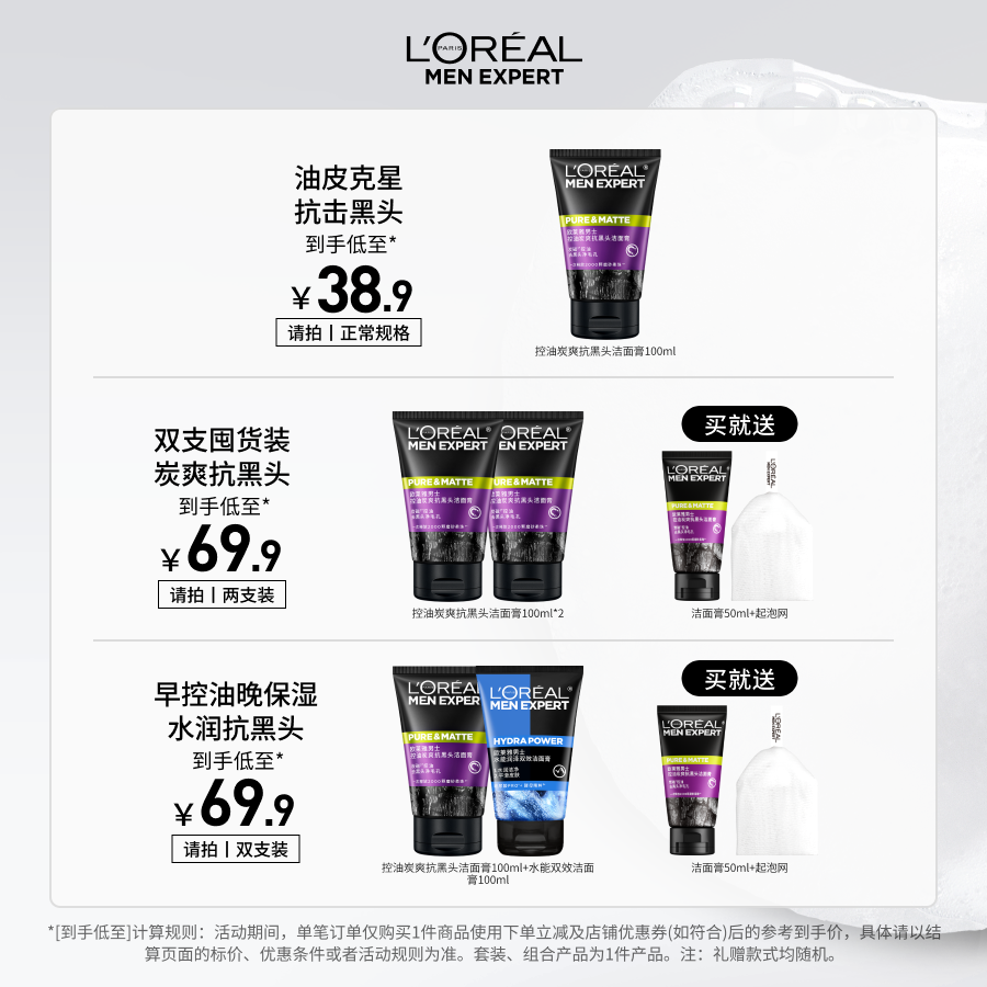 【百亿补贴】欧莱雅男士专用去黑头洗面奶清洁毛孔控油清爽洁面乳