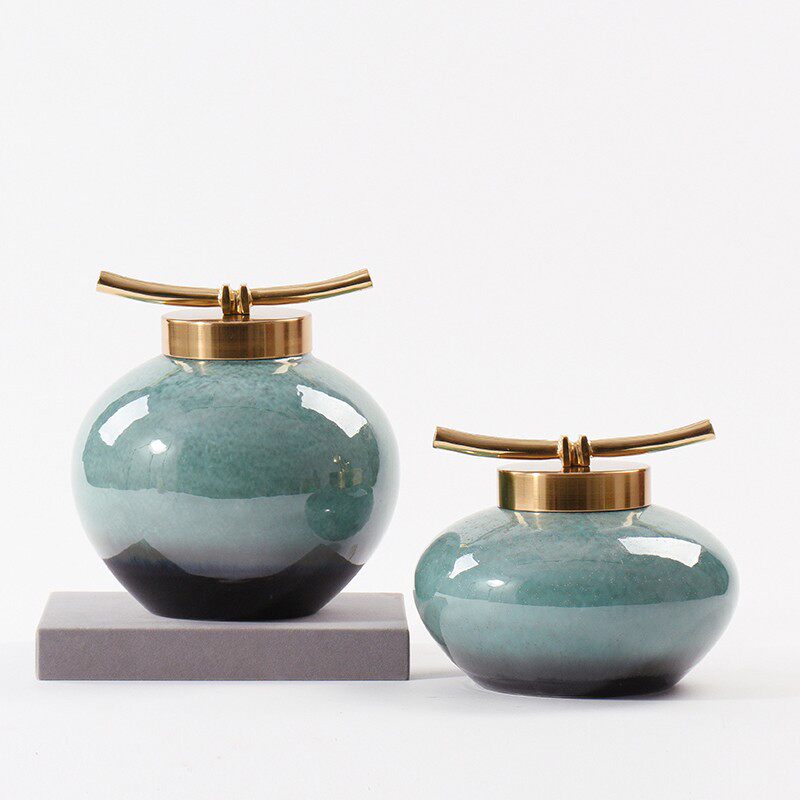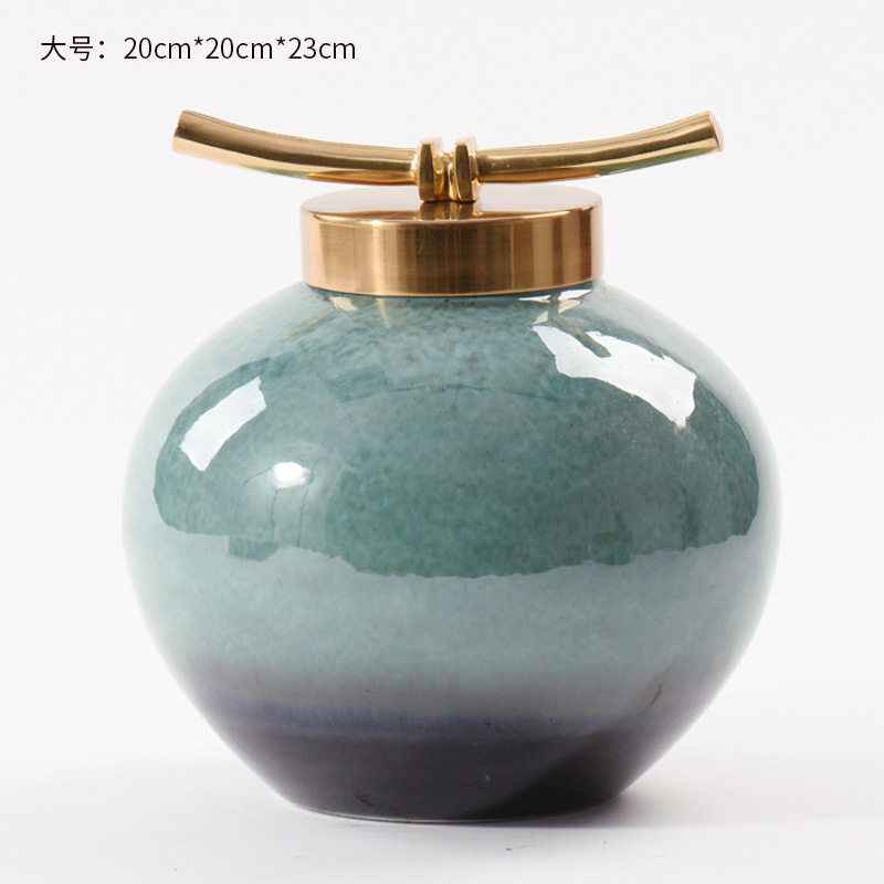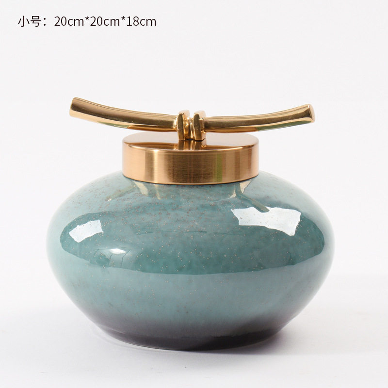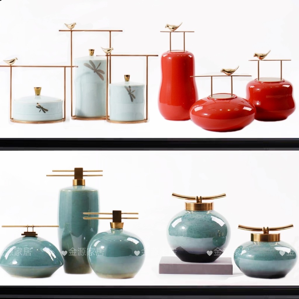 新中式陶瓷储物罐摆件提篮金属提盒样板房书柜客厅玄关装饰品摆件