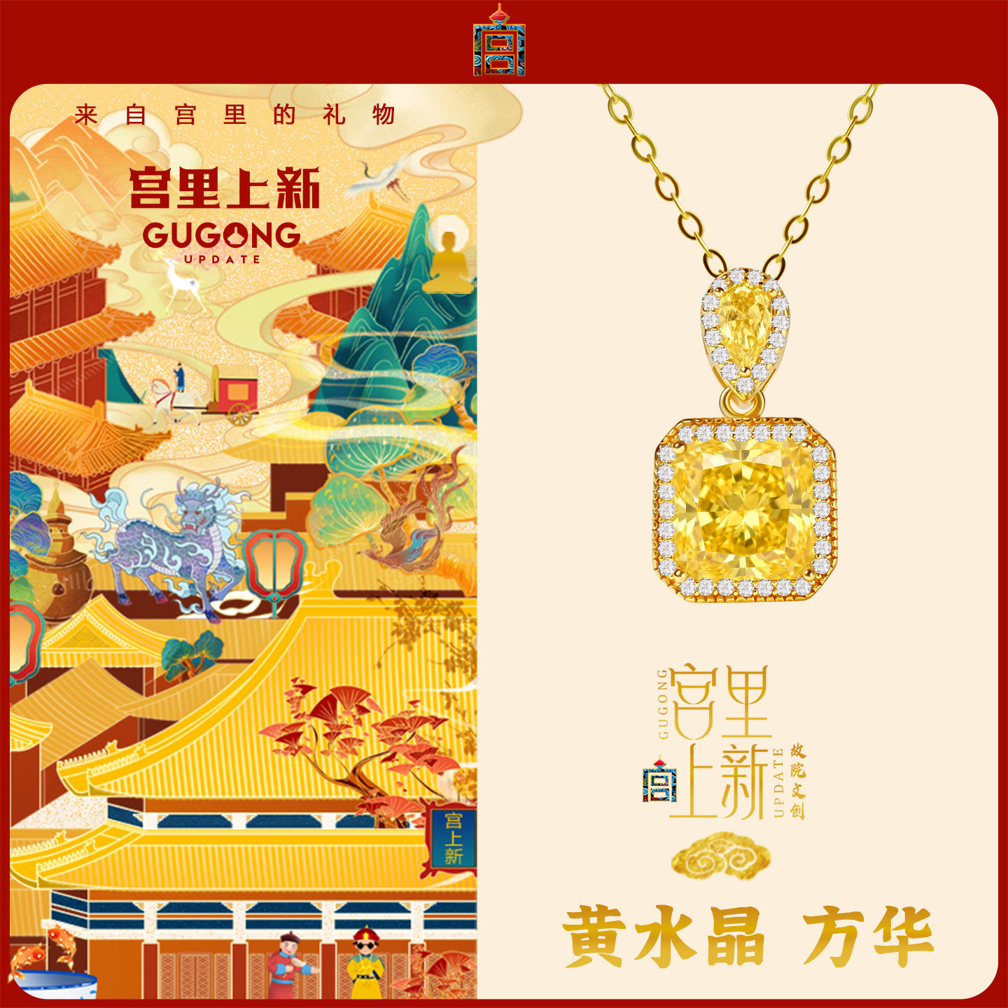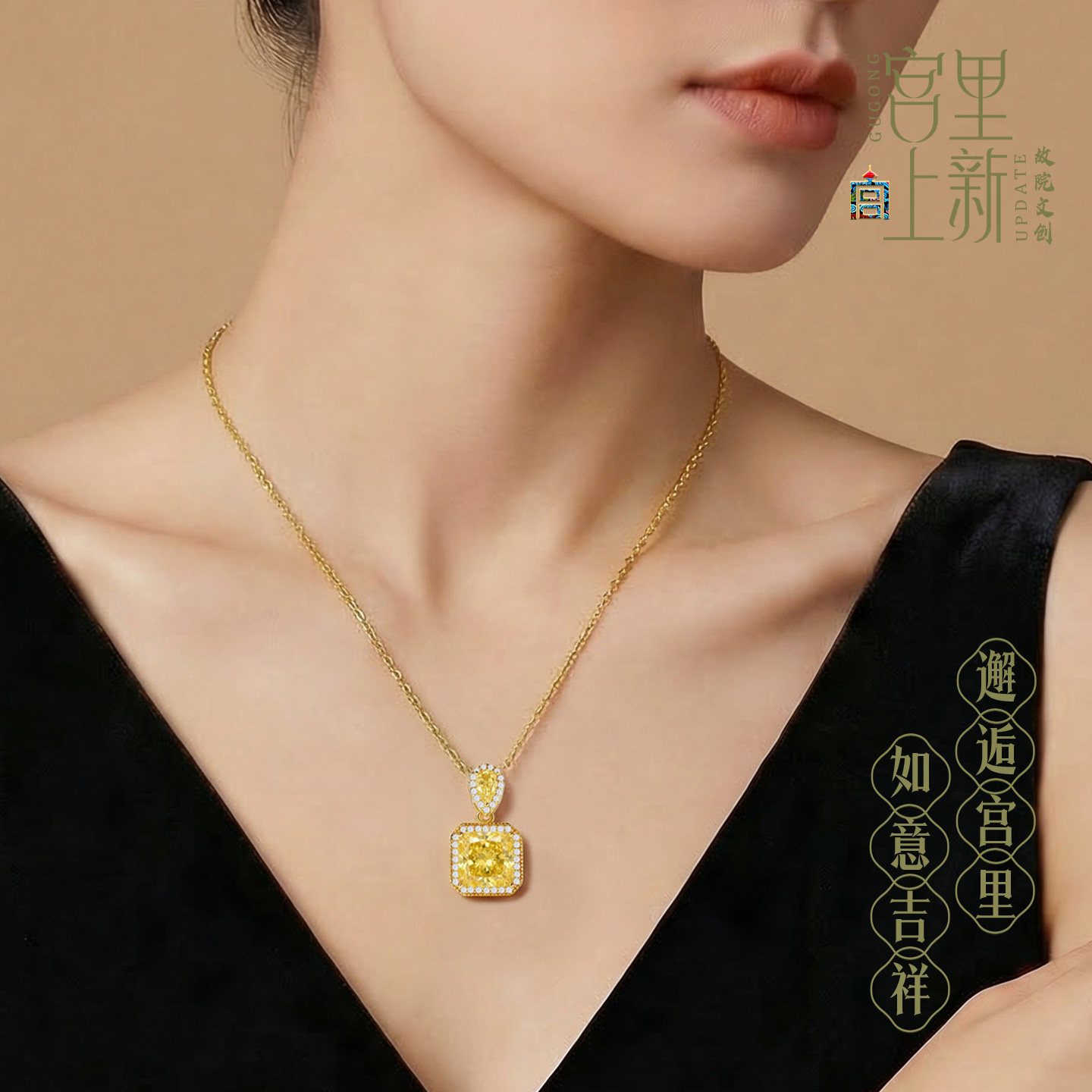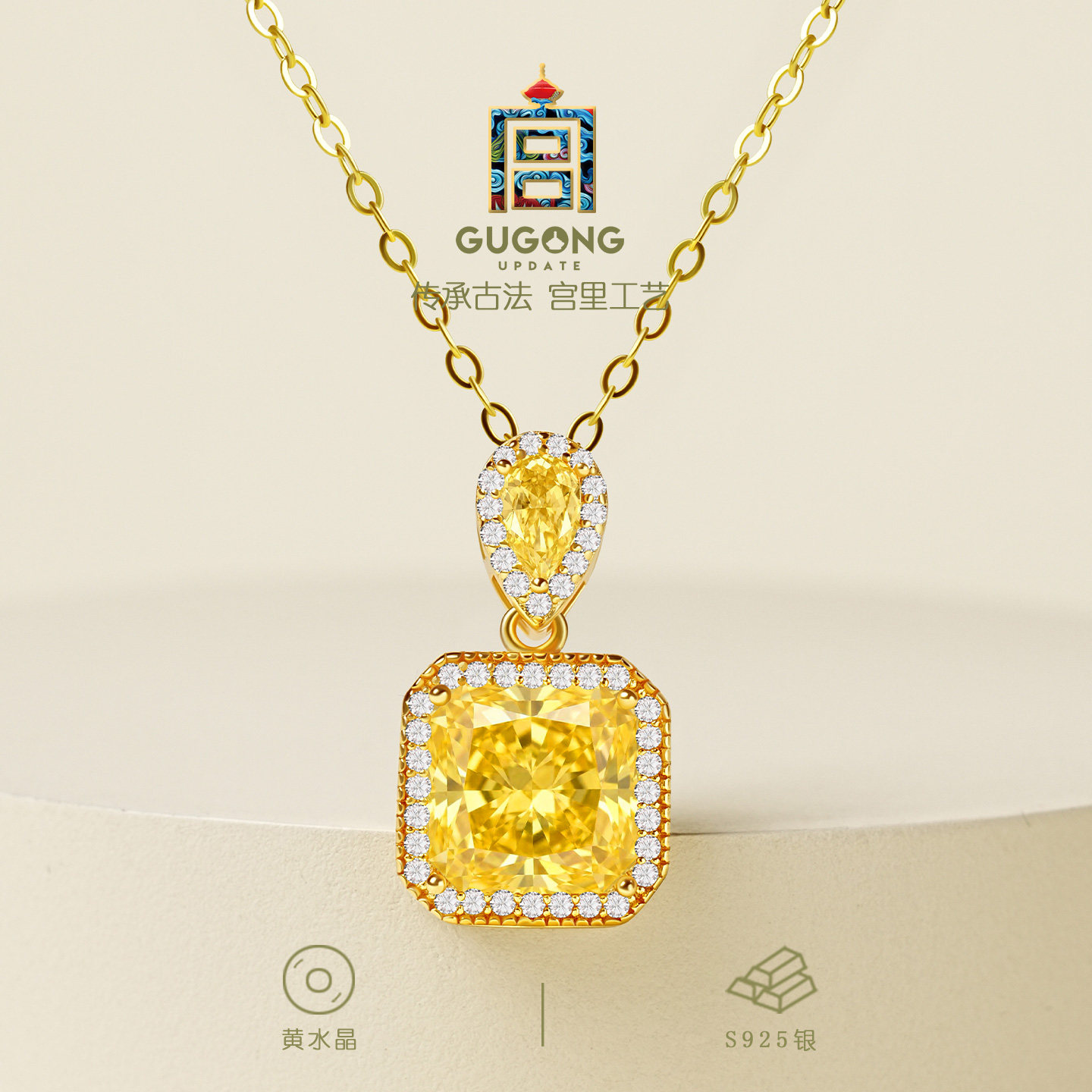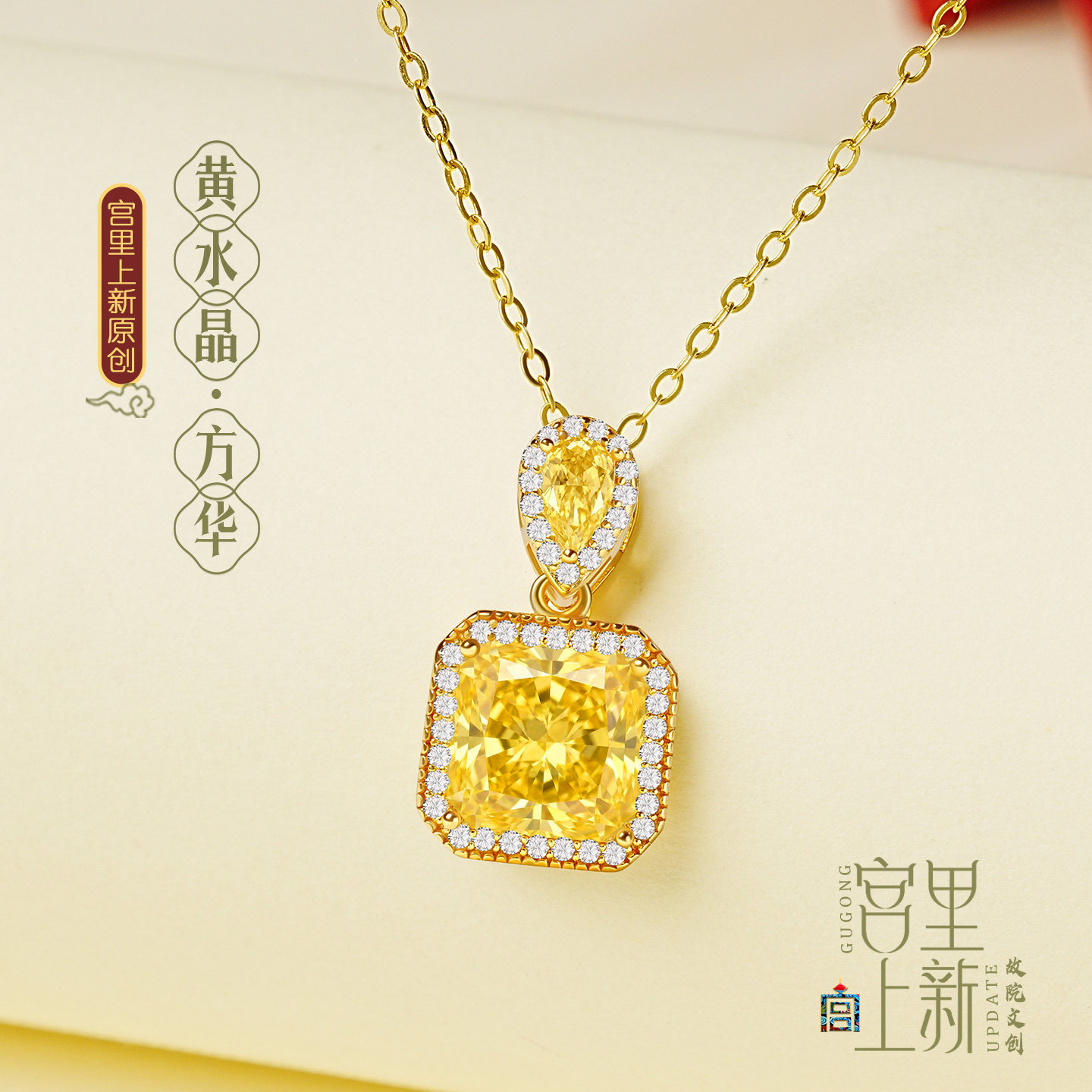 宫里上新黄水晶吊坠女天然黄色水晶项链新中式方糖锁骨链生日礼物