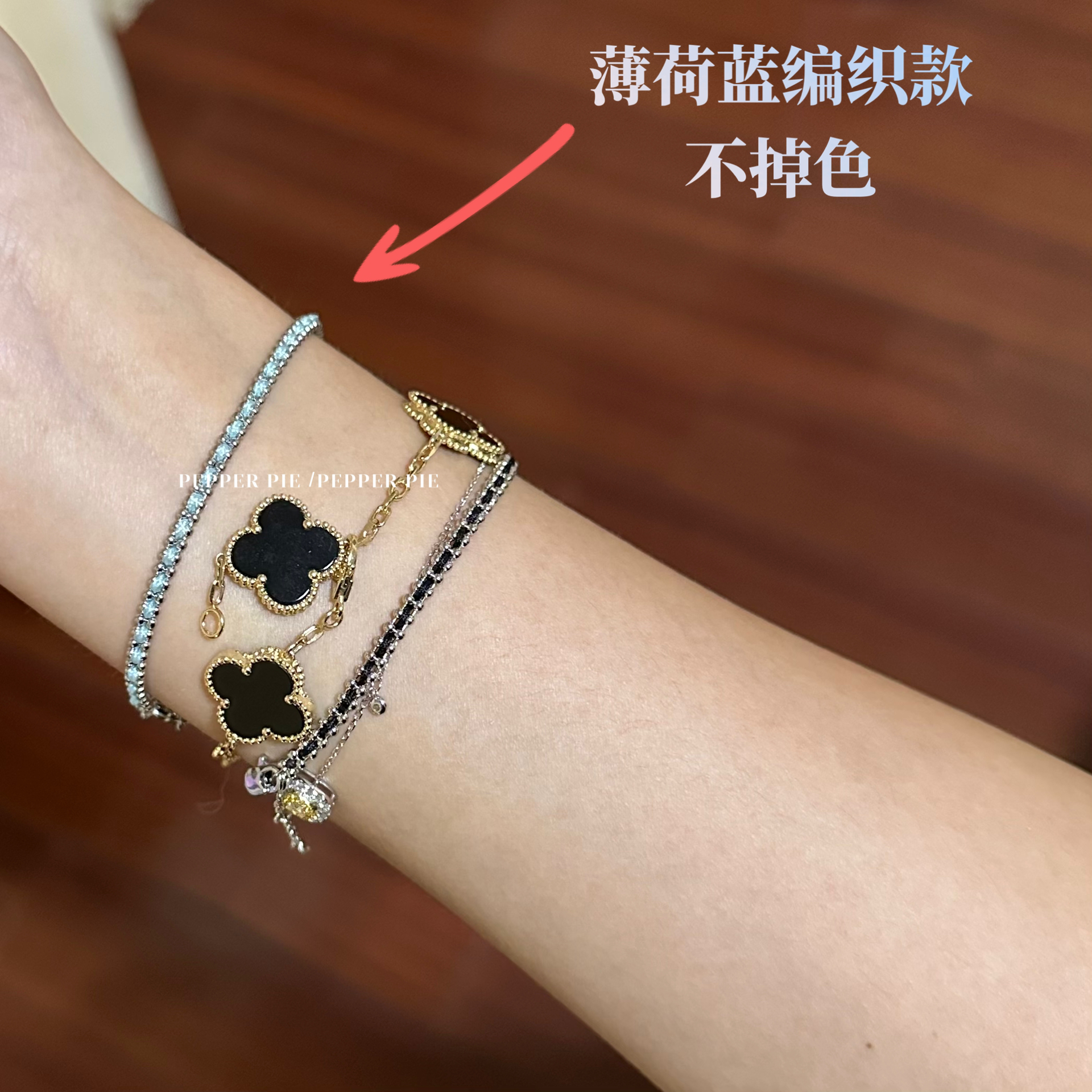 辣椒派不掉色可水洗梦幻玛雅蓝色小红书同款法国小红绳金色手链女