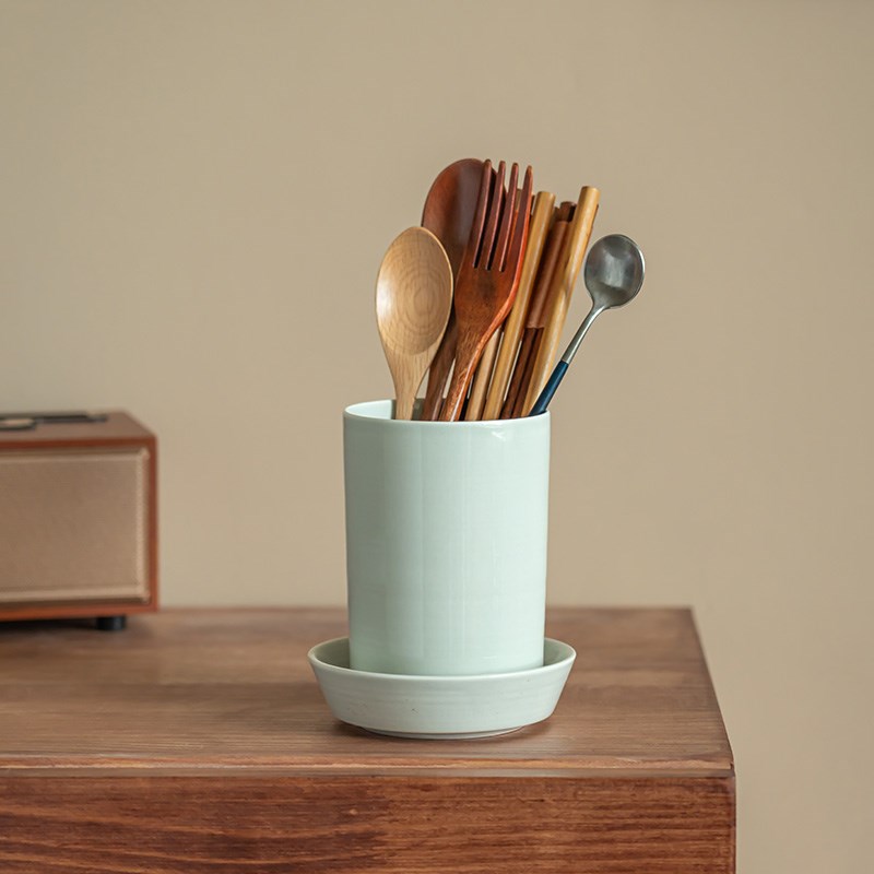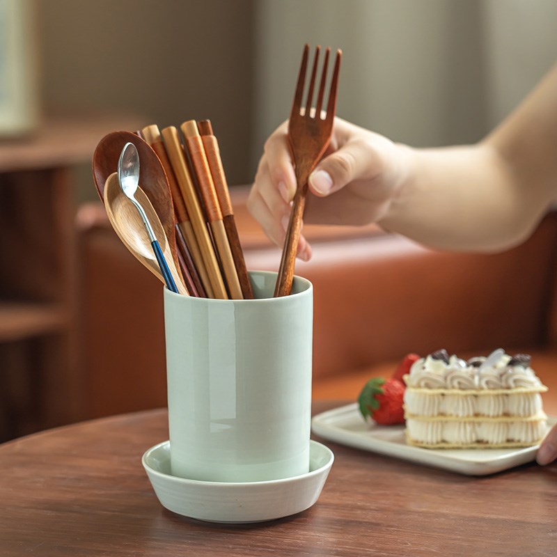 【家居帮手】底部可沥水陶瓷筷子筒餐桌收纳装饰摆件刀叉勺收纳筒