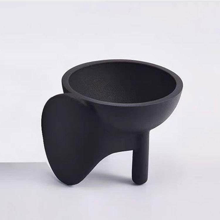 简约现代黑色三足高脚果盘样板间酒店餐厅客厅家用桌面收纳摆件