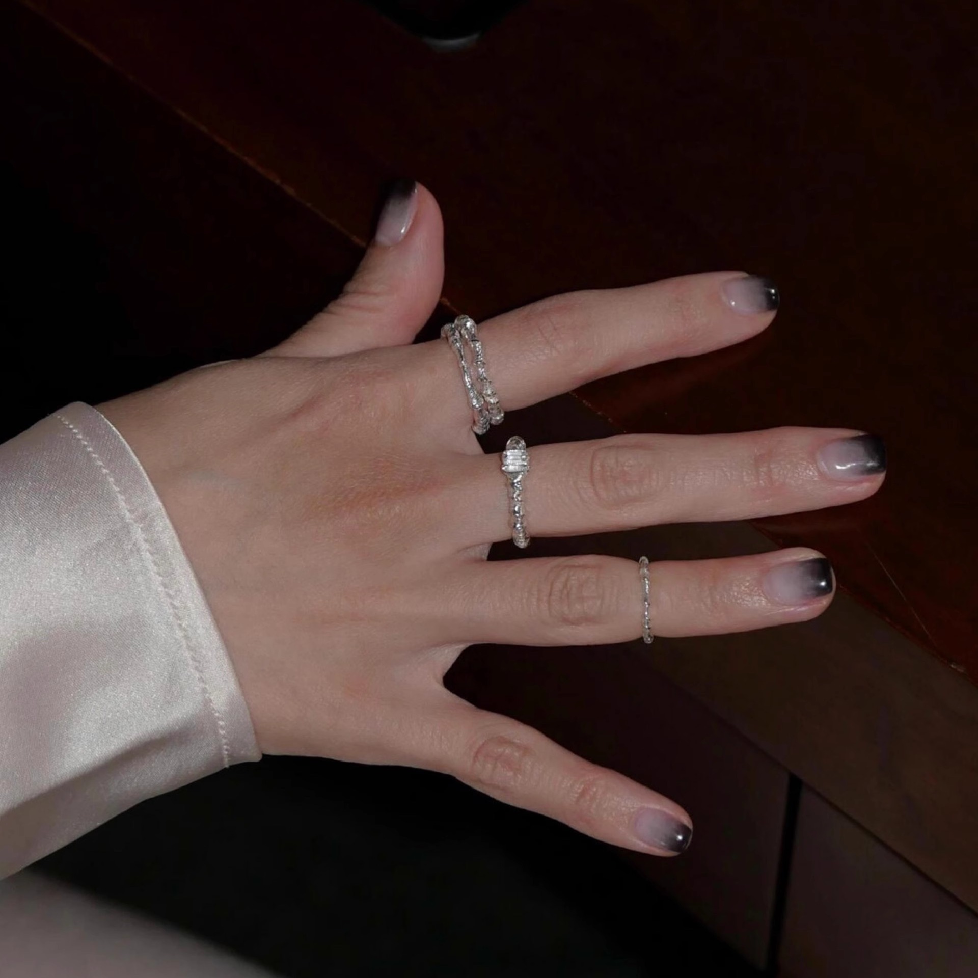 U.CA韩国souhait肌理螺纹戒指ins小众设计极简冷淡叠戴纯银开口戒