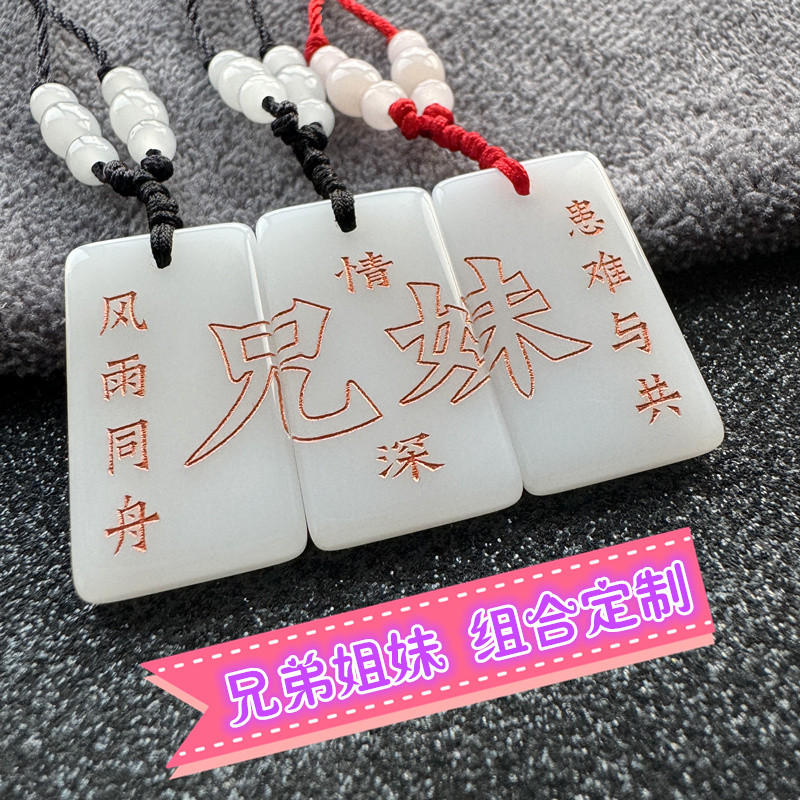 三姐弟兄弟姐妹家庭项链刻名字男女吊坠学生纪念创意平安牌送礼物