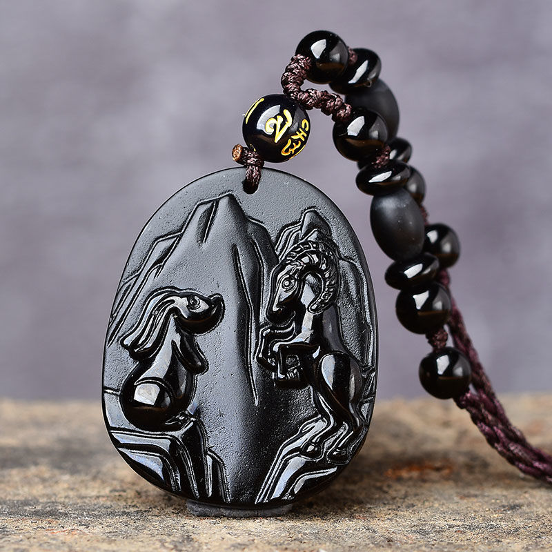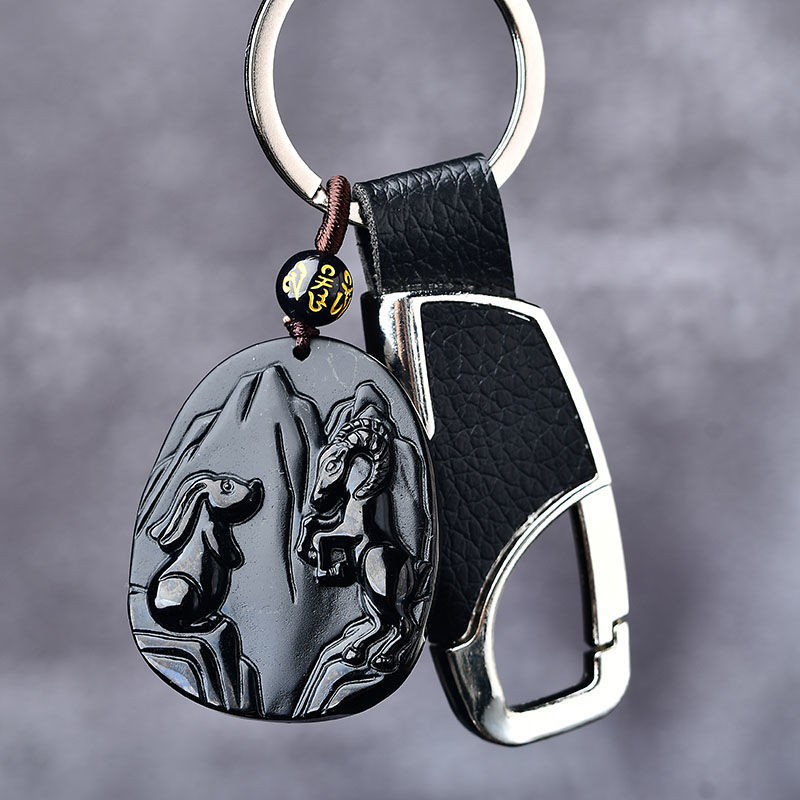 淘运灵阁2025年羊兔赐禄吊坠属猪黑曜石吉祥物男女钥匙扣礼物