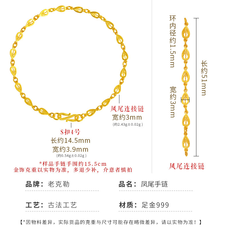 老克勒古法黄金凤尾手链足金999金链子连接链手饰纯金送女友