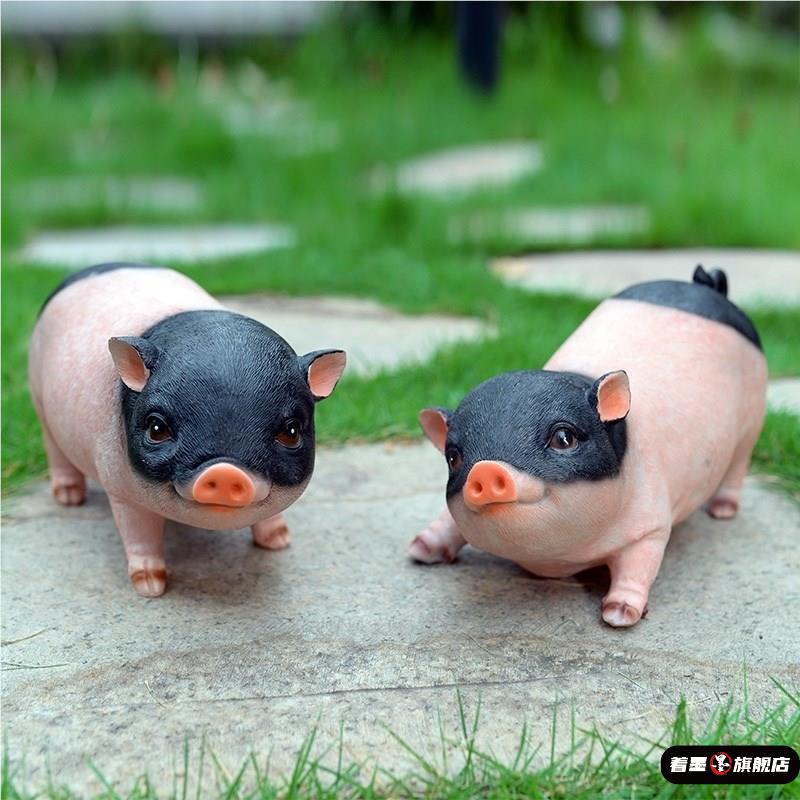 装饰居场花雕塑农猪小黑猪仿真动物大白园摆件家摆件树脂客厅模型