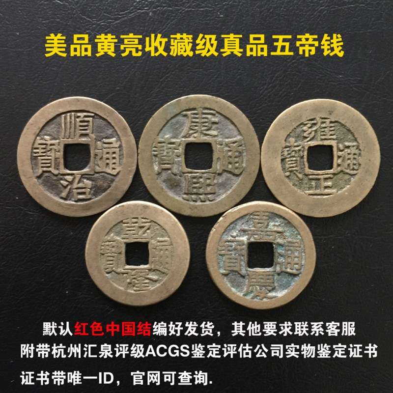 保真品清朝五帝钱五帝铜钱六帝钱风水摆件清代古钱币葫芦挂件
