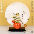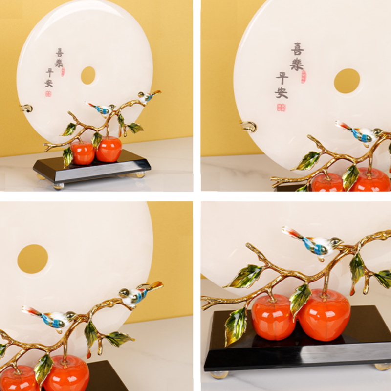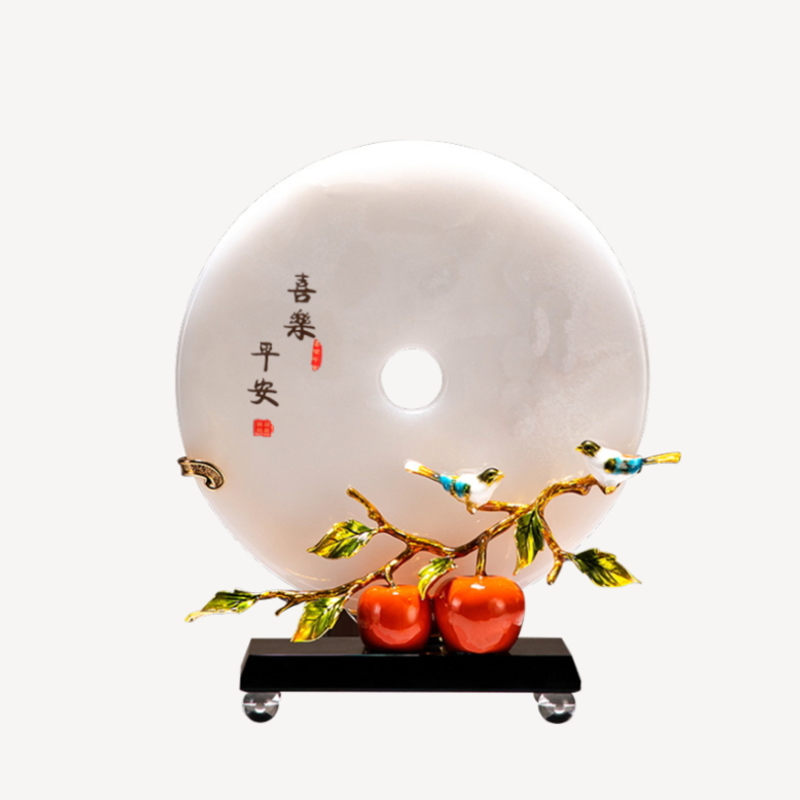 喜乐平安珐琅彩天然玉石平安扣摆件客厅玄关酒柜家居饰品乔迁礼物