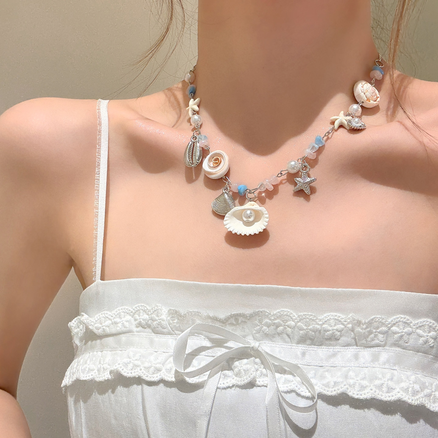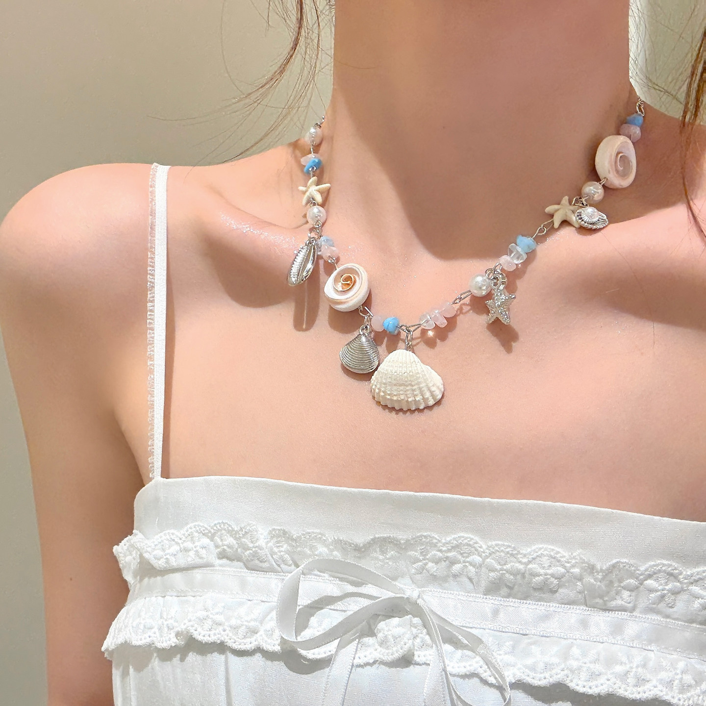 氧气女孩 蓝色海星串珠项链2026新款独特漂亮锁骨链海边度假配饰