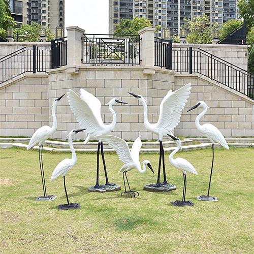 户外仿真白鹭摆件玻璃钢庭院花园林动物仙鹤雕塑水池鸟类造景装饰
