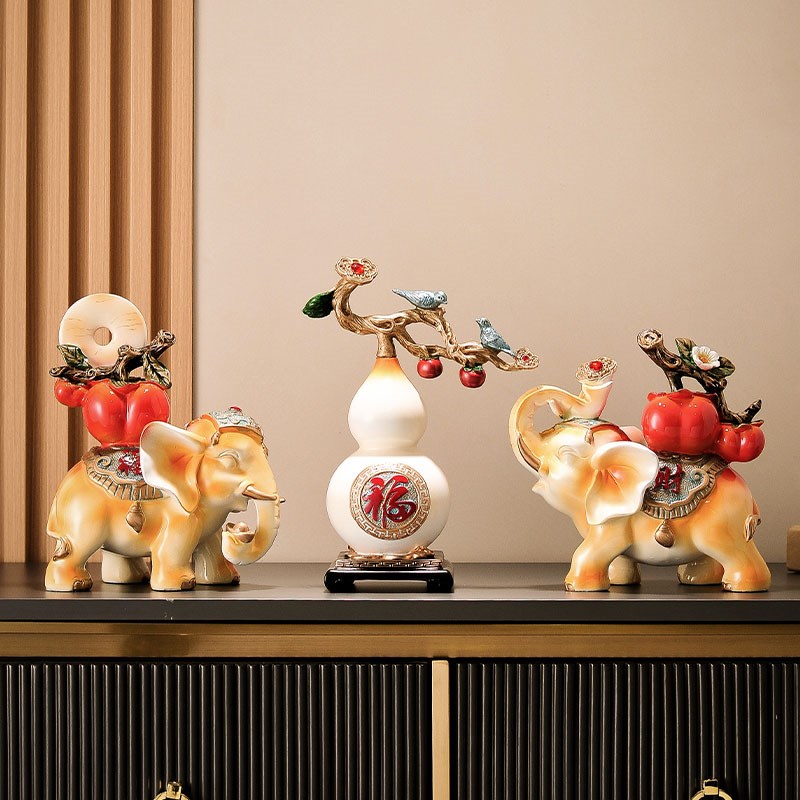 事事如意大象一对摆件 家用客厅新中式大号创意高档装饰品摆件