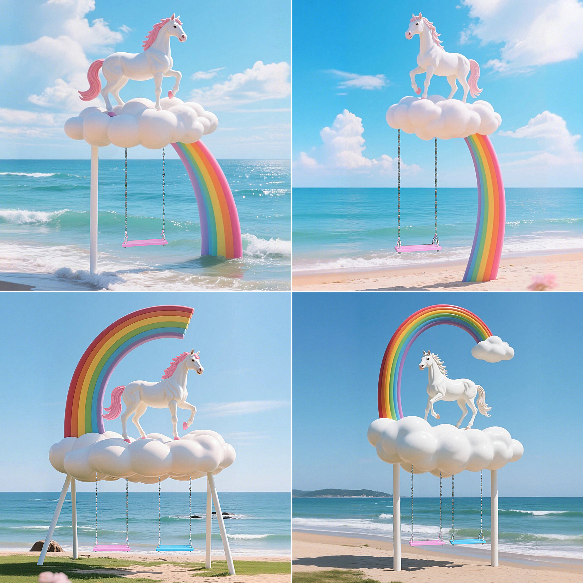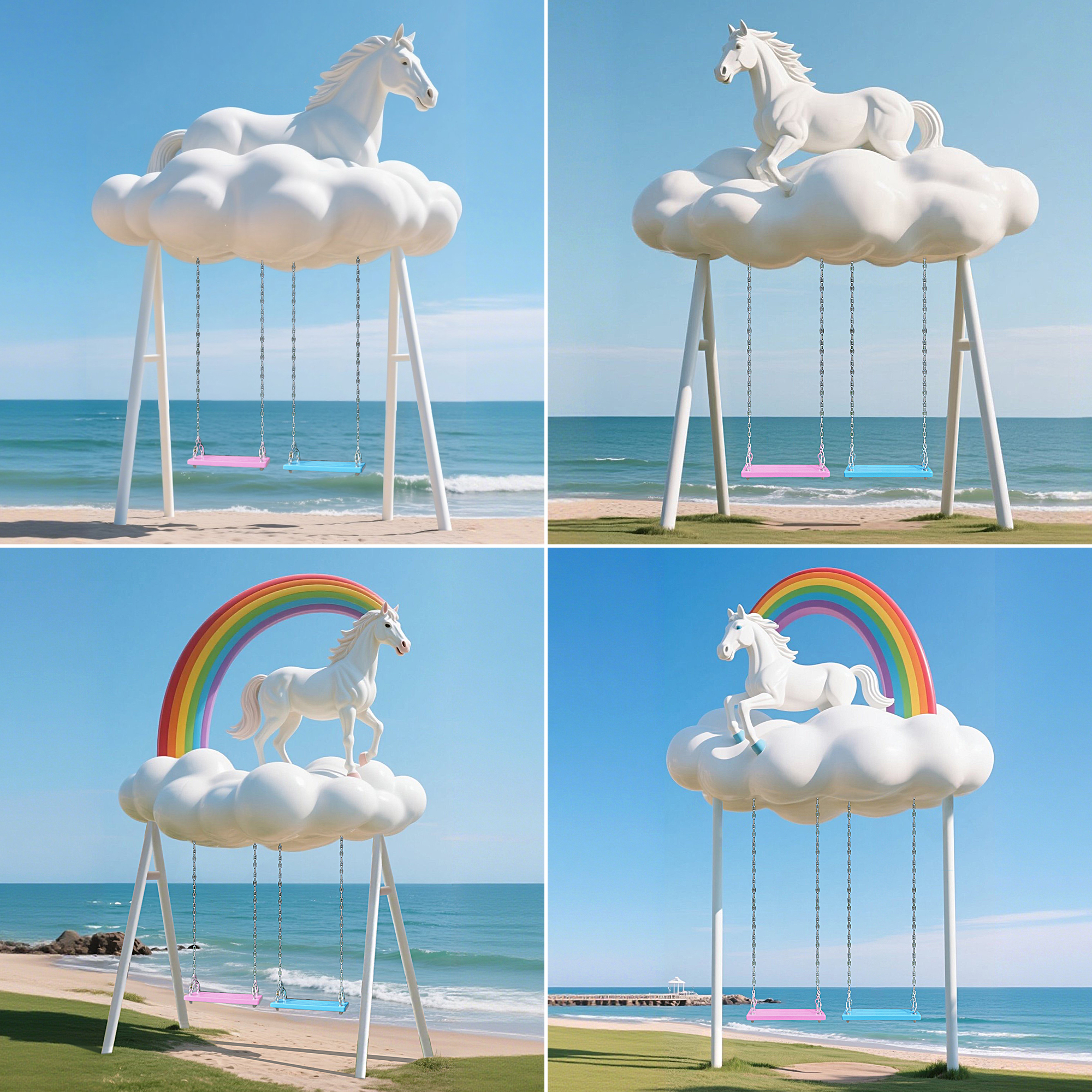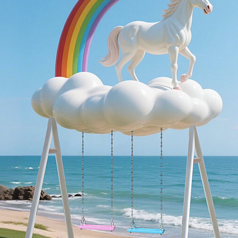 云朵马秋千大摆件彩虹装饰户外景区海边营地公园造景打卡拍照雕塑
