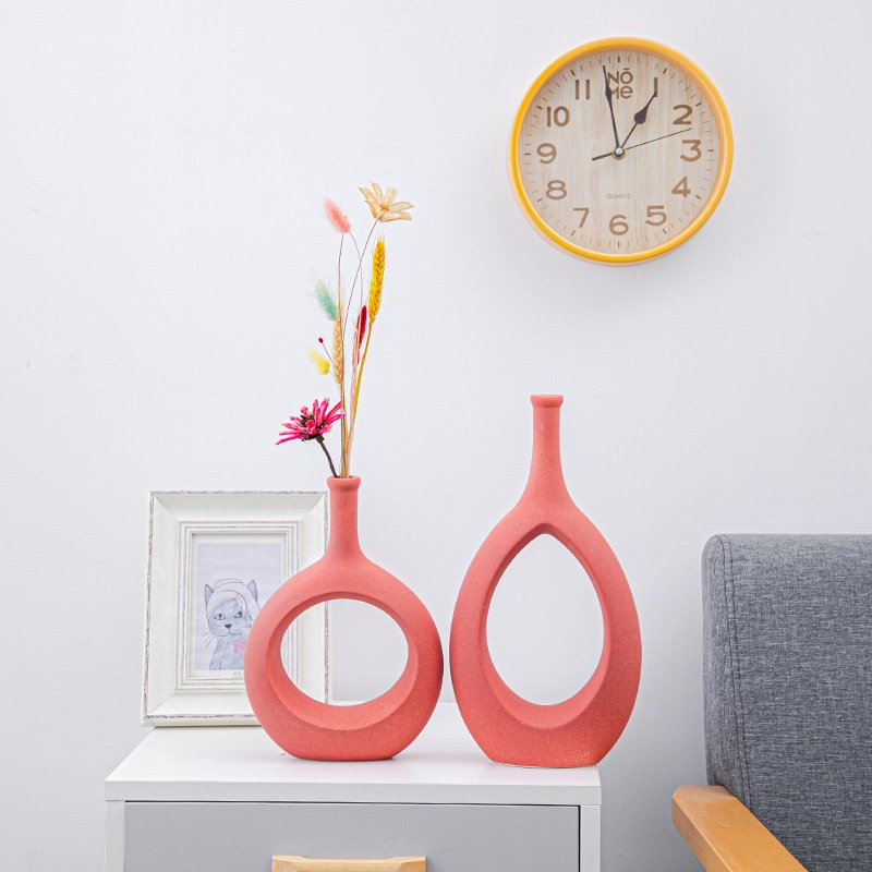 亚马逊款式黑色陶瓷花瓶现代简约餐桌客厅摆件家居家饰干花花器