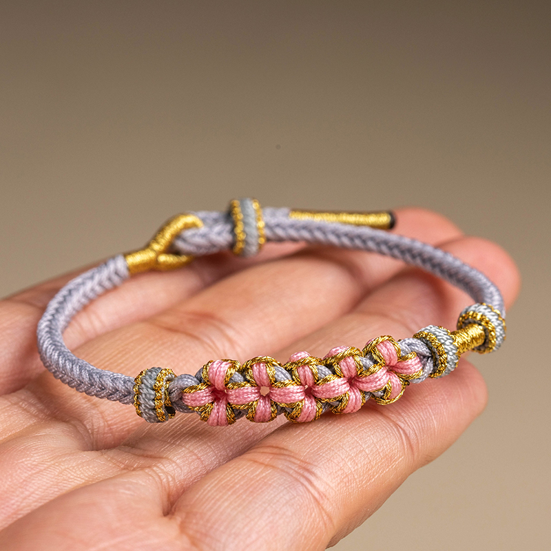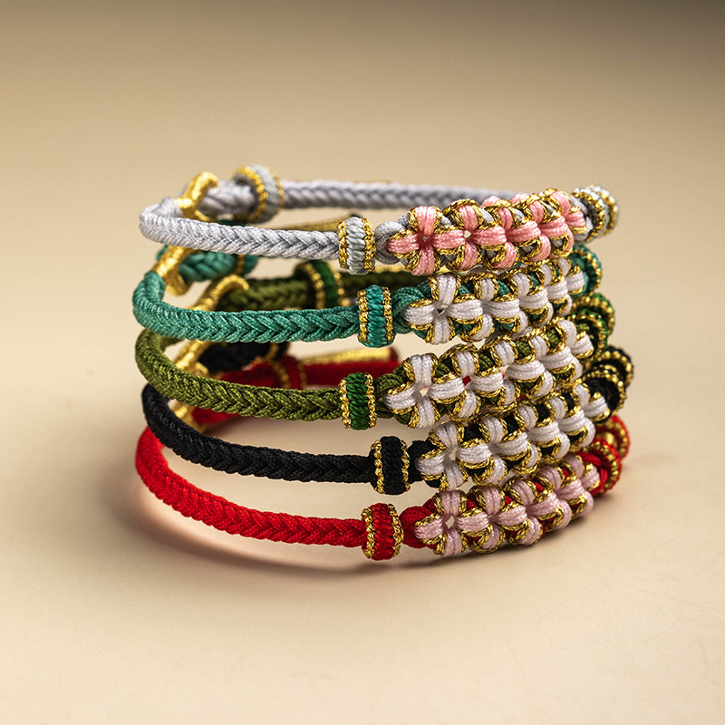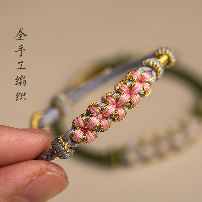 DIY桃花编织半成品手链串珠叠戴手绳穿黄金转运珠吊坠配饰编绳女