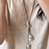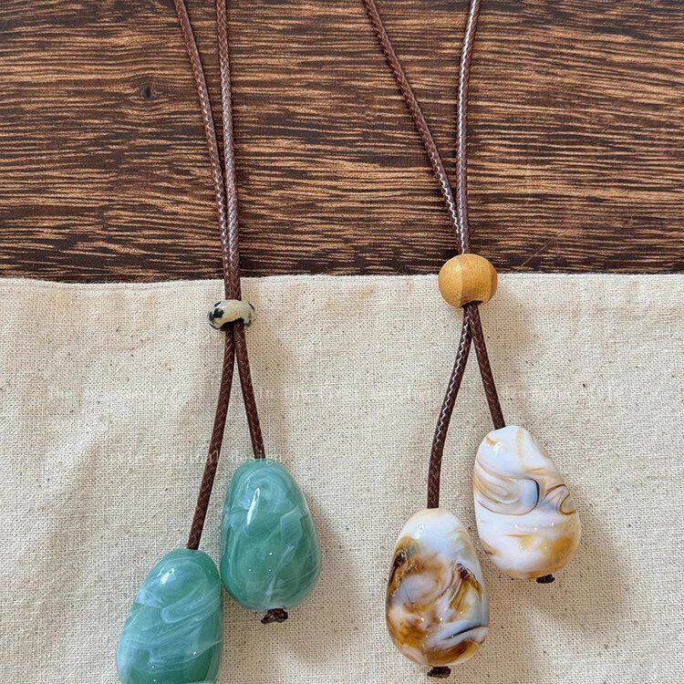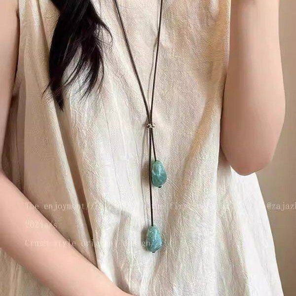 绿色木质圆珠长款项链吊坠绳女款森系复古设计毛衣链小众挂脖配饰