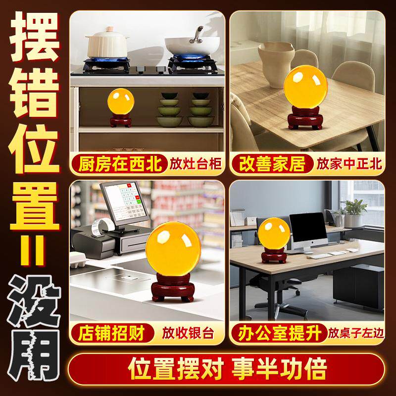 黄色水晶球摆件绿粉玻璃球底座可旋转玄关客厅白水晶黄水晶办公室