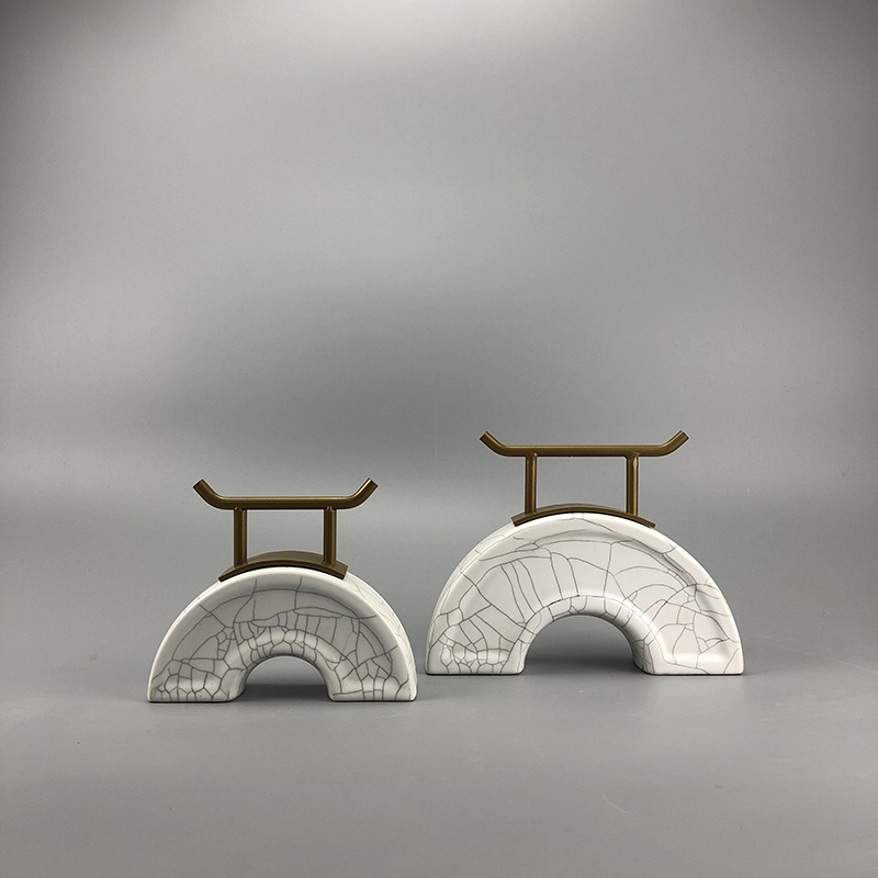 现代新中式家居软装饰品办公室样板房间玄关陶Q瓷铁艺创意拱桥摆