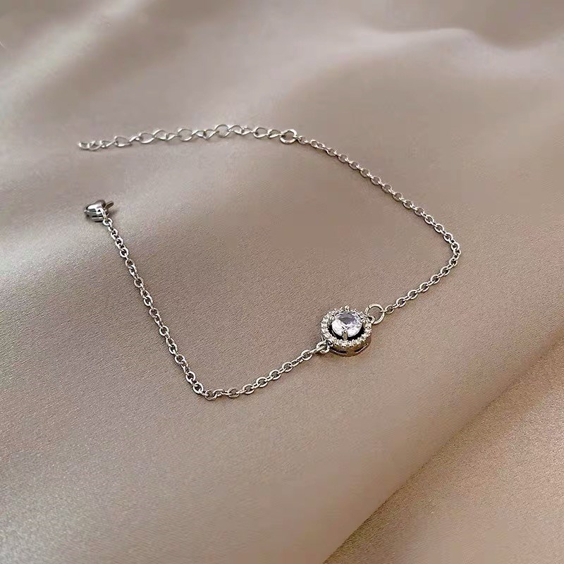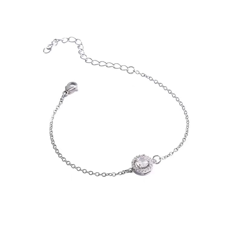 18K金镶嵌进口莫桑石圆包手链时尚小众玫瑰白金满钻手镯泡泡ins链