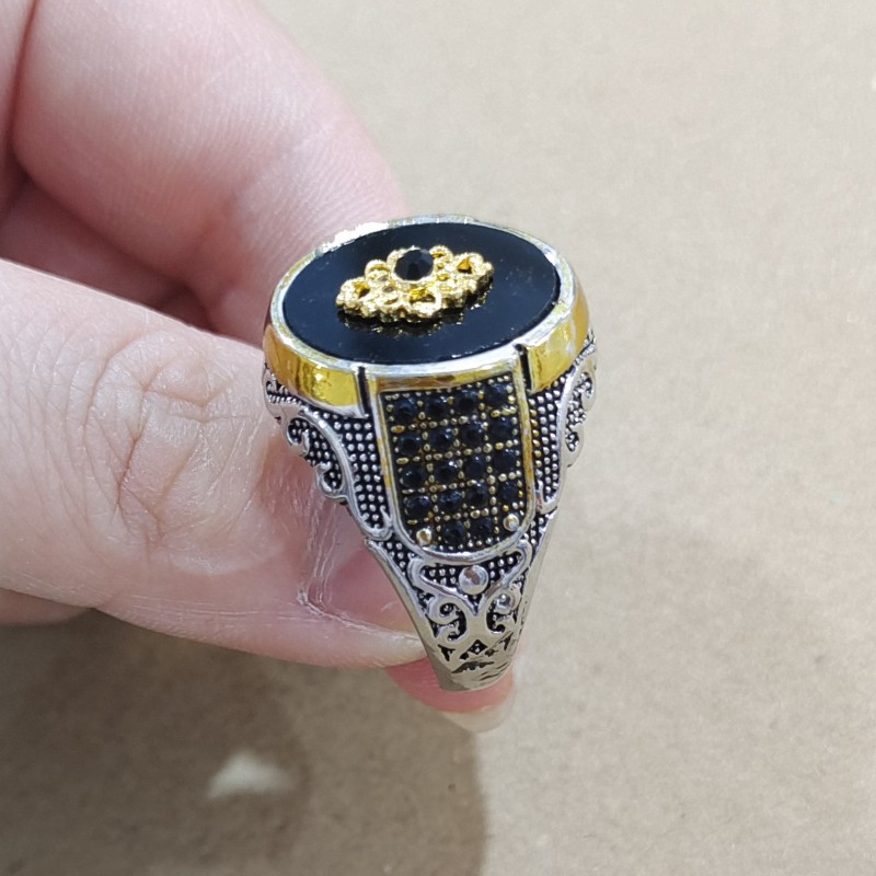 欧美个性复古黑色亚克力戒指双色皇冠指环 Dual Color Crown Ring