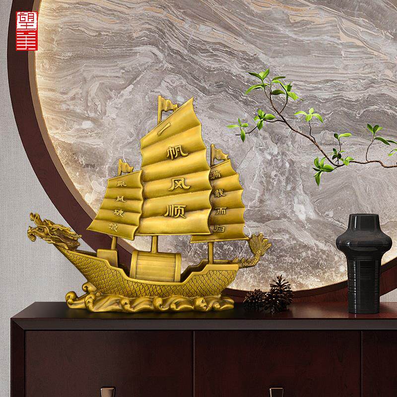 黄铜一帆风顺帆船摆件客厅办公室乔迁酒柜店铺开业装饰摆设工艺品