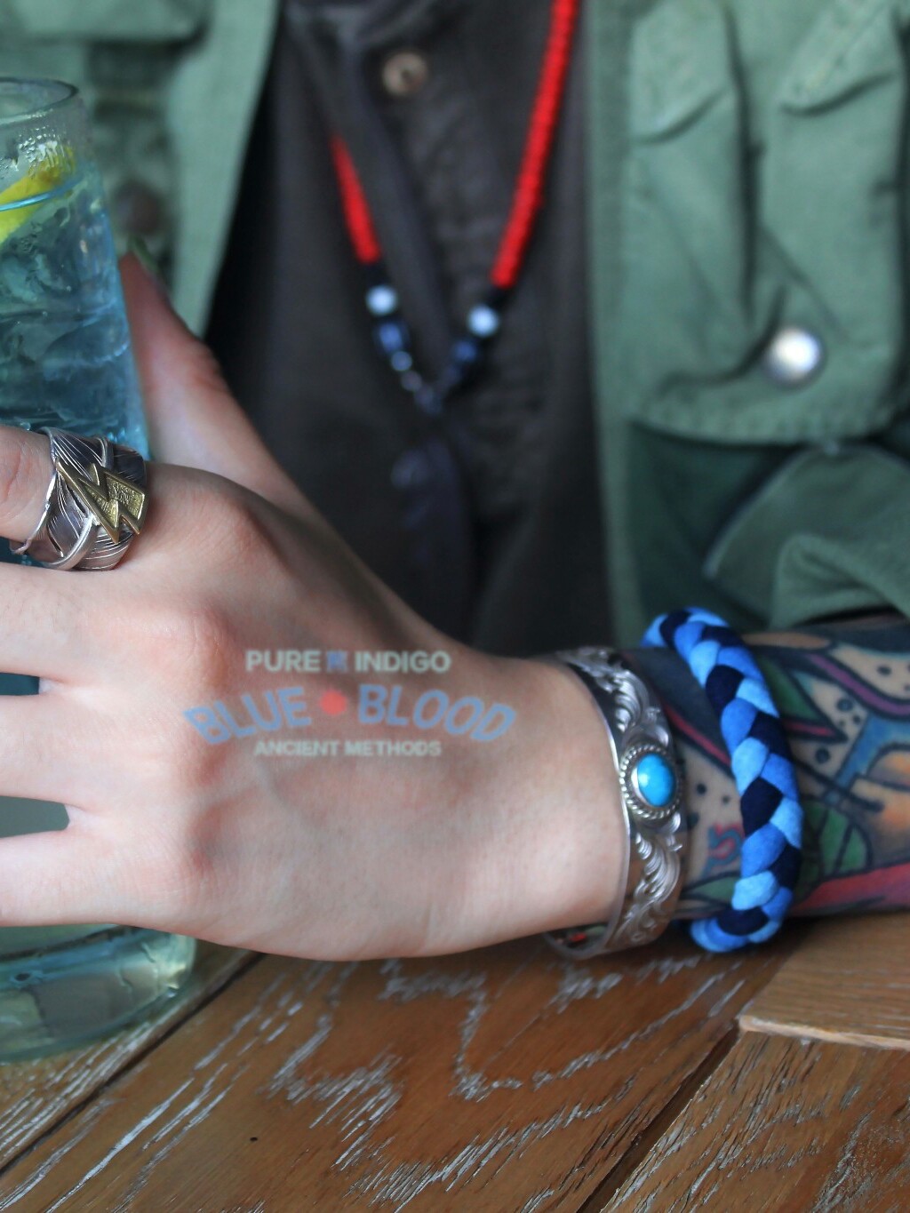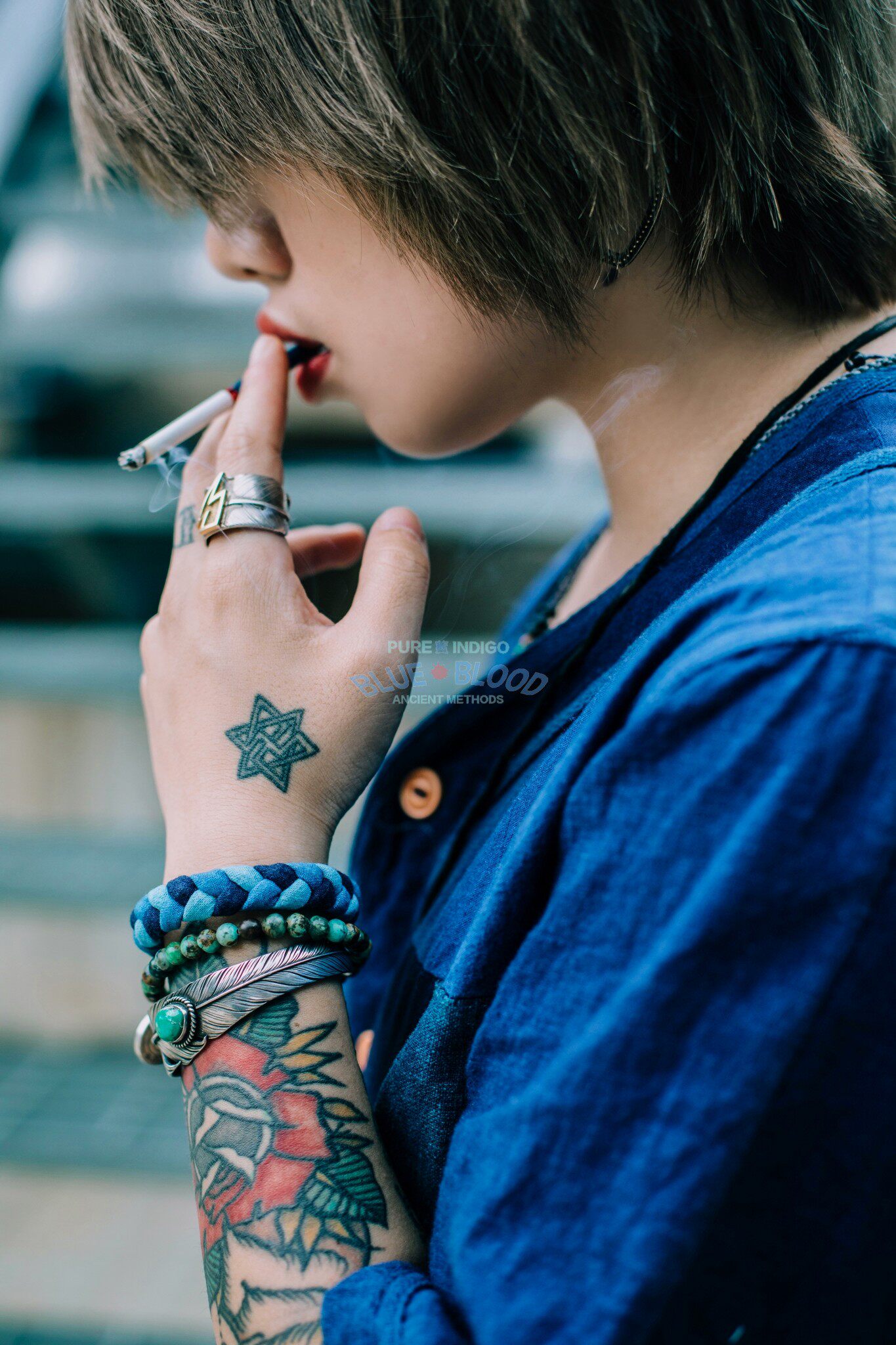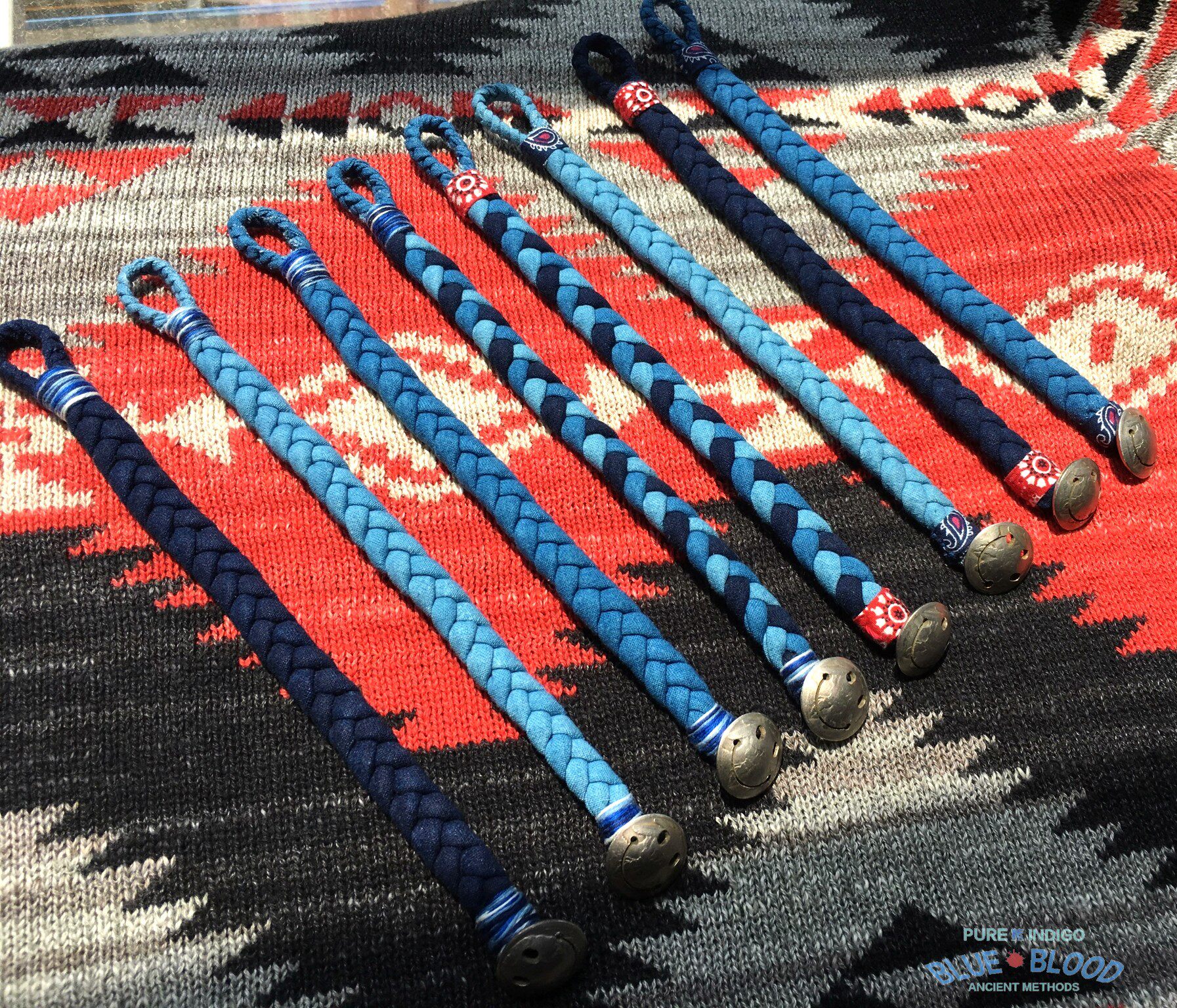 BLUE BLOOD手作 indigo古法蓝染手绳 手链 复古笑脸印第安美分币