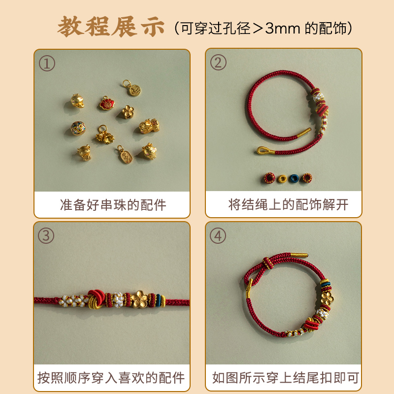 【特惠福利】手工编织DIY黄金吊坠转运珠半成品手绳本命年桃花结