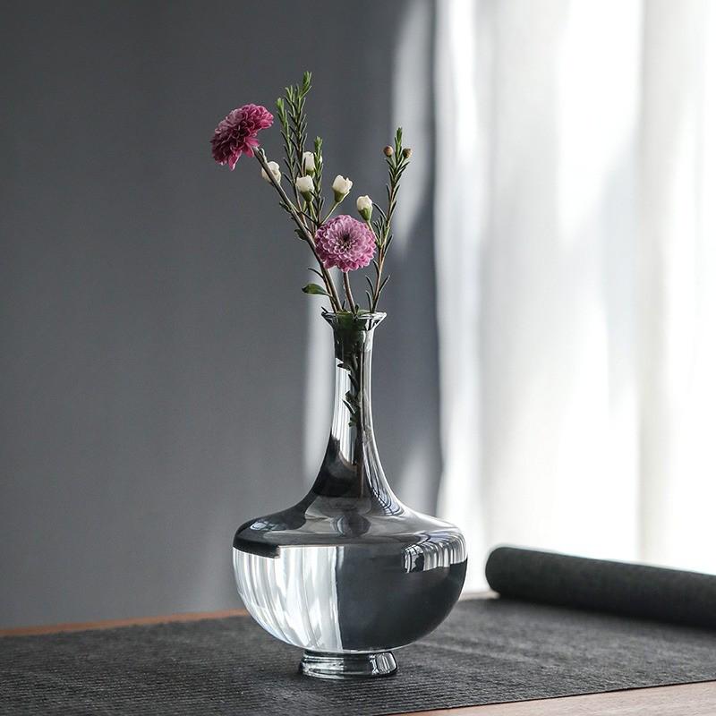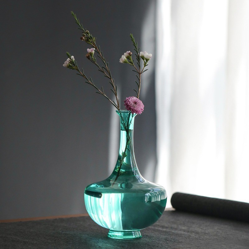 翡绿色小花瓶新中式玻璃磨砂透明琉璃花器摆件客厅桌面插花器皿